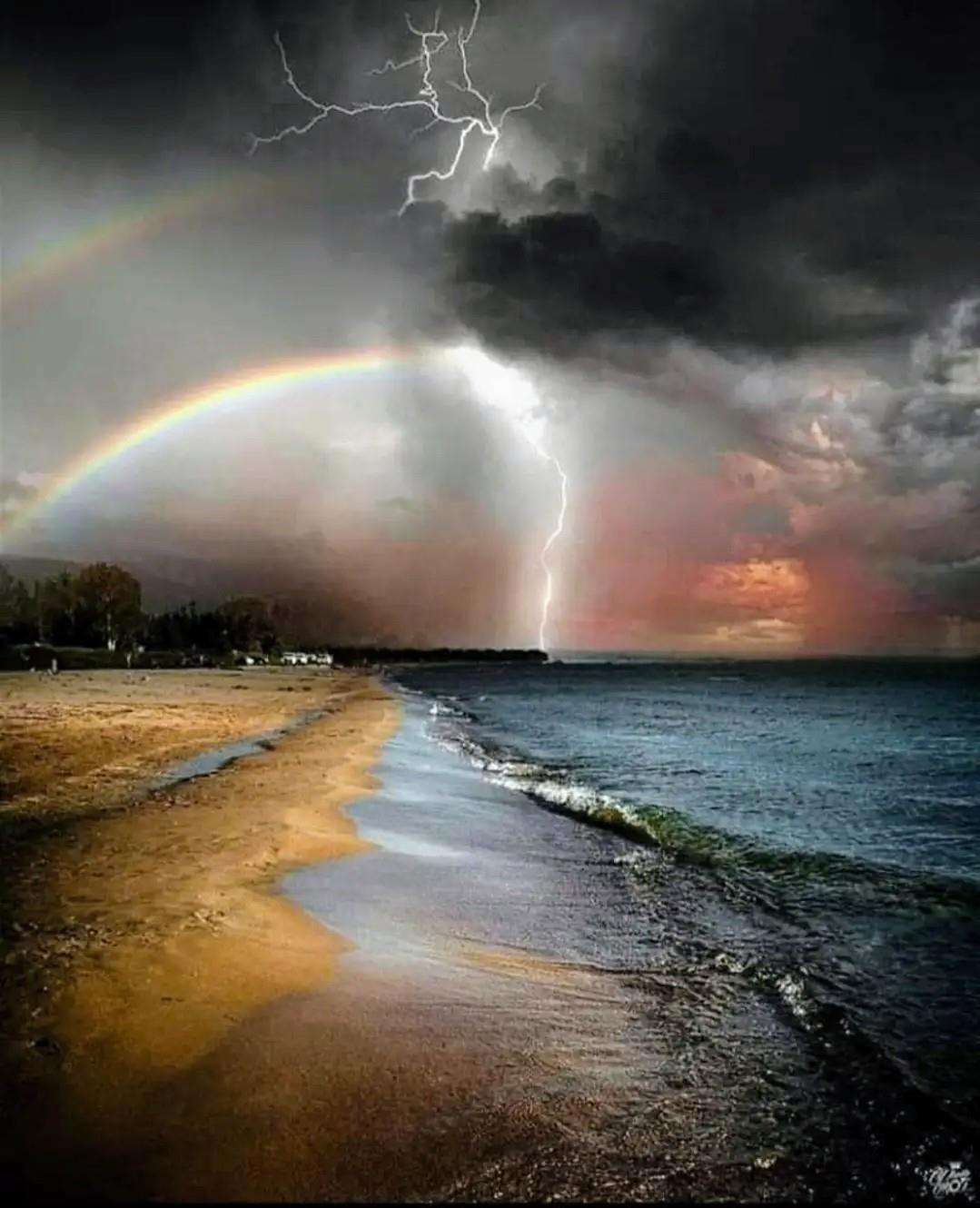 Пляж Саубл. Гроза. Двойная радуга. Онтарио.