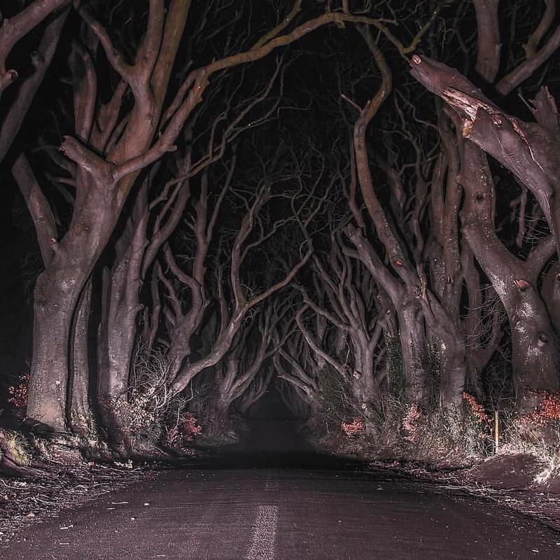 На самом деле дорога окружена великолепными полями. Наступит утро, и деревья совсем не будут пугающими. Деревья стали настолько знаменитыми, что эта часть света даже была показана в сериале "Игра престолов".