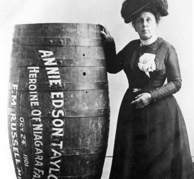 Энни Эдсон Тейлор планировала разбогатеть с помощью единственного в своем роде пиар-трюка. Она намеревалась прокатиться на бочке над Ниагарским водопадом в свой день рождения (24 октября 1901 года). У нее была водонепроницаемая, мягкая бочка, специально сделанная для нее. В качестве проверки она отправила над водопадом бочку с кошкой внутри. К большому ее удовольствию и счастью кошки, кошка пережила это путешествие.