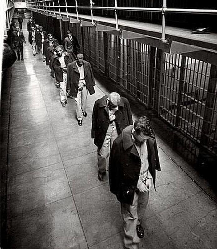 В начале 60-х годов эксперты подсчитали, что для ремонта частей тюрьмы, поврежденных соленой водой, потребовалось бы 5 миллионов долларов. В 1962 году была организована попытка побега, и это, по-видимому, стало последней каплей. На снимке изображена последняя партия заключенных, переведенных в федеральные тюрьмы в разных частях страны в 1963 году.
