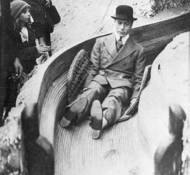 До того, как король Георг VI стал королем, он был герцогом Йоркским. Он также посетил выставку на Уэмбли в 1925 году, где его сфотографировали спускающимся с горки. Судя по выражению его лица, он, кажется, не в восторге от этого. Вы хотите знать, почему?