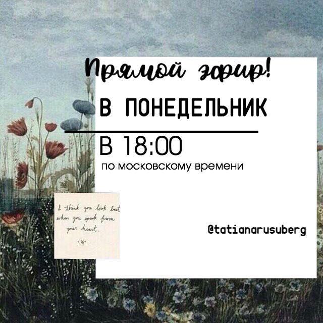 Автор: Татьяна РусубергДорогие читатели и подписчики, впервые в жизни я выхожу в прямой эфир в #instagram ! Спешите видеть и слышать - #татьянарусуберг on air!