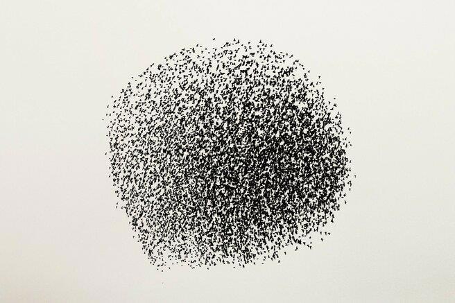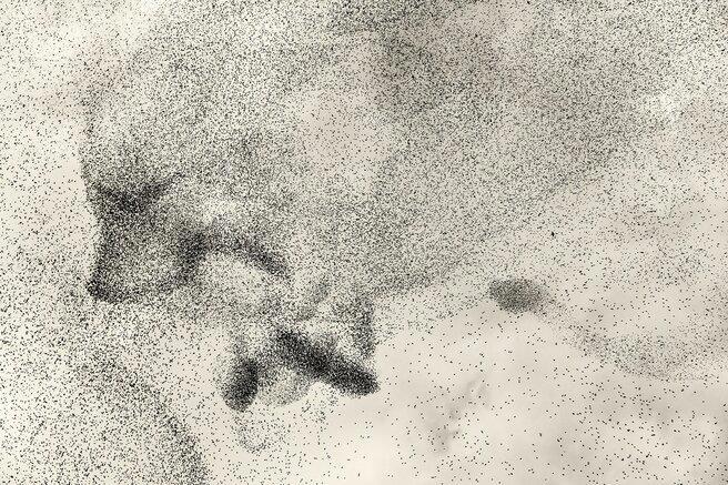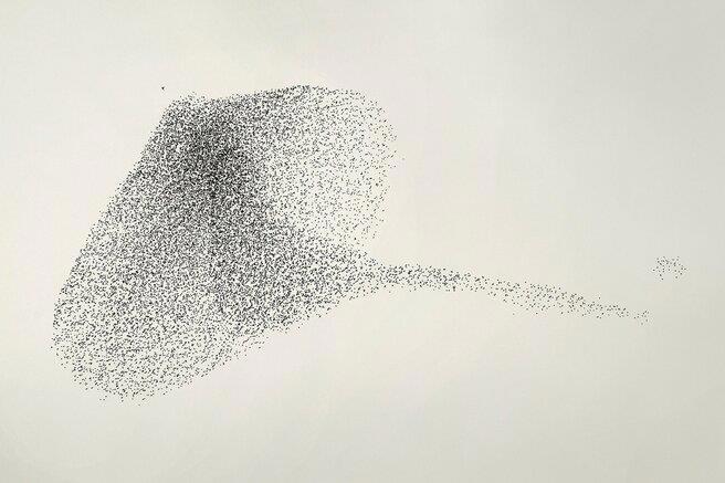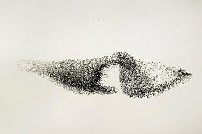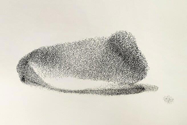 В итоге Солкеру удалось снять самые разные фигуры: иногда «простые», геометрические, вроде круга или сердца, а иногда сложносочинённые, напоминающие собаку, бабочку или… одну огромную птицу, получившуюся из множества других, сложившихся, как частички паззла.