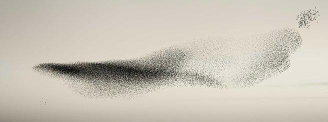 Иногда скворцов пугают хищные птицы, внося в без того хаотичные завихрения дополнительные переменные.