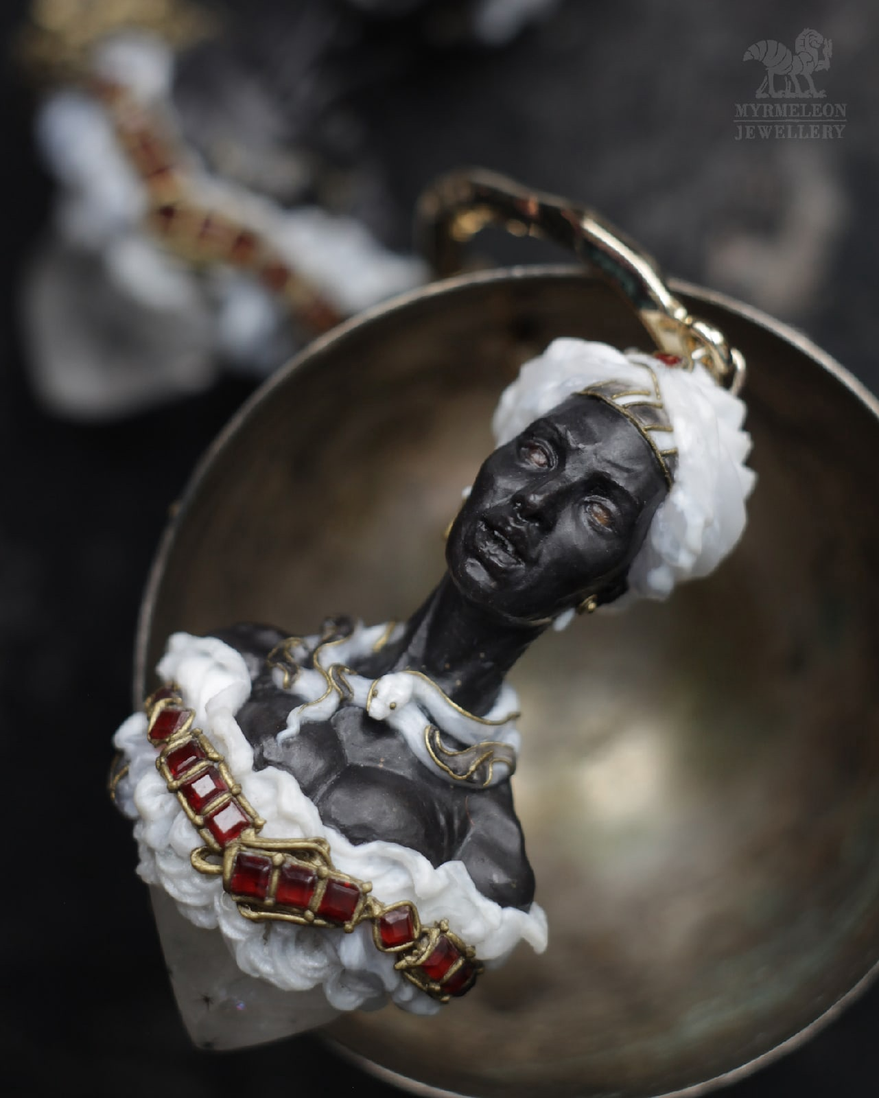 Я рада, что смогла сделать своих "Мавров" не закрывая глаза, но вложив чёрную нить злой иронии и осуждения лживой бесчеловечности под позолотой истории в каждый "шов" и каждый шрам. Я не буду расписывать все 666 культурных/художественных отсылок, по крайней мере сейчас. Но мне бы хотелось, чтобы зритель прослушал и прочитал слова этой песни. В музыке и в глине.