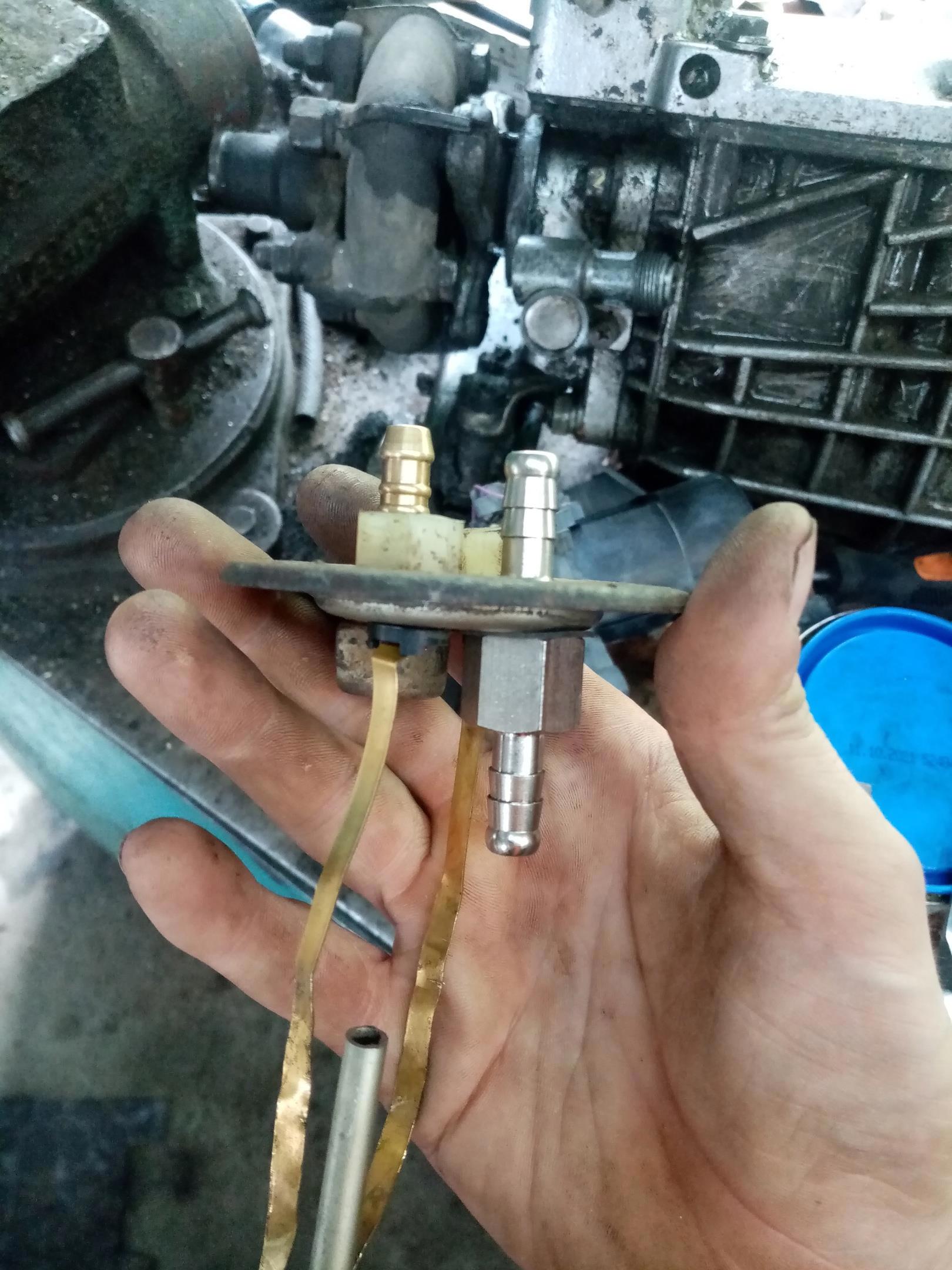 Инжекторных Од небыло. Совсем. Ходили слухи про каких-то единорогов с рено-мотором, но живём их никто не видел, и купить бак от этого чуда не реально, имхо. Начитавшись тазоводов, сделал вывод что решений у меня два: выносной насос от Волги, или погружной от десятки. Почесав умную голову, заказал насос от Волги, и стал ждать. Когда насос пришел, бак я уже скинул, и быстрый осмотр показал, что я немного угадал. Но нет. К этому моменту я уже успел сделать слив бензина, врезав штуцер под шланг 8 миллиметров.
