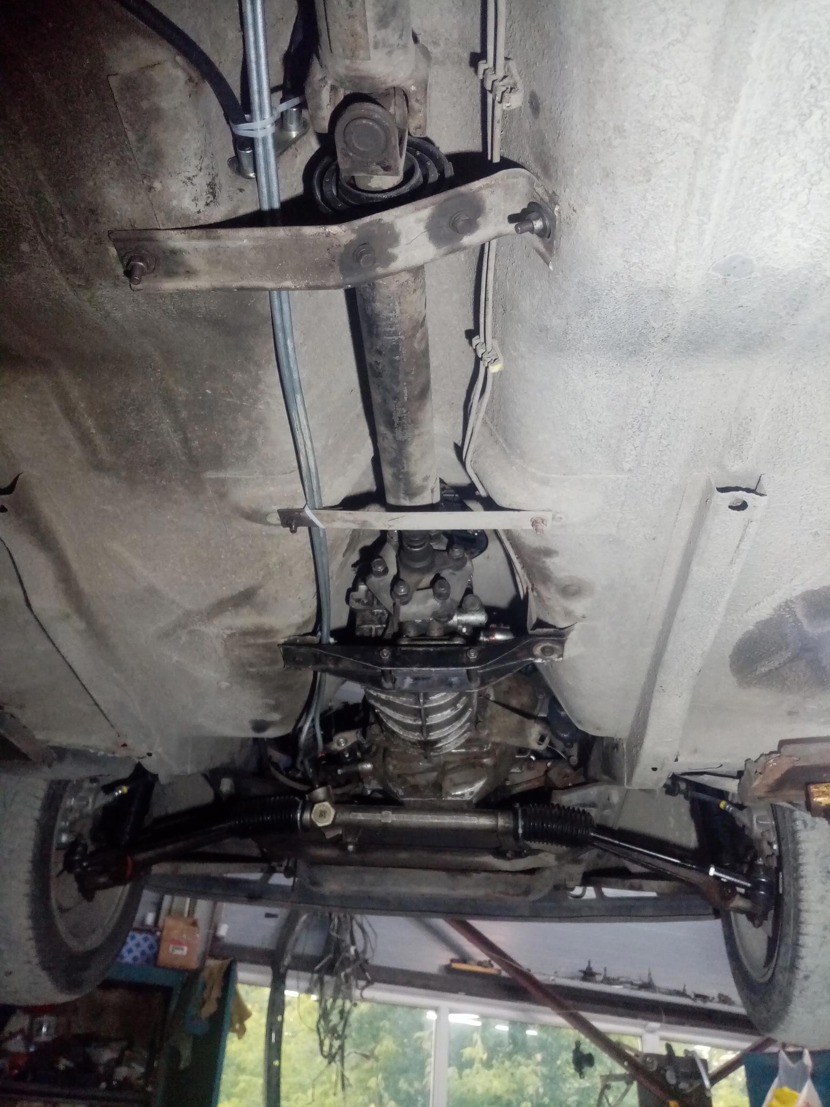 Коробка была к тому времени уже отмыта, установлена новая кулиса с рычагом перемены передач, так как старая была страшно удрочена и рычаг влево-вправо улетал значительно дальше, чем требовалось для включения передачи, поэтому перемена передач напоминала игру "угадайка-попадика", хз какую воткнёшь. Мотор к тому моменту был уже под капотом, и коробку поставили на место, высверлив обломок болта, который должен был держать редуктор датчика скорости, который был просто воткнут и замазан герметиком.