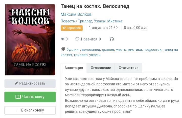 Ну а пока попытаюсь скрасить ваши последние летние дни и завтра выпускаю повесть "Велосипед" с 17:00 до 18:30. Не будет такой путаницы, как в прошлый раз, все поставлено на запланированную публикацию. Если кто хочет читать от начала и до конца, а не по мере выхода глав (которые будут выходить с промежутком в 15 минут), читайте после 18:30 (плюс минус час)).