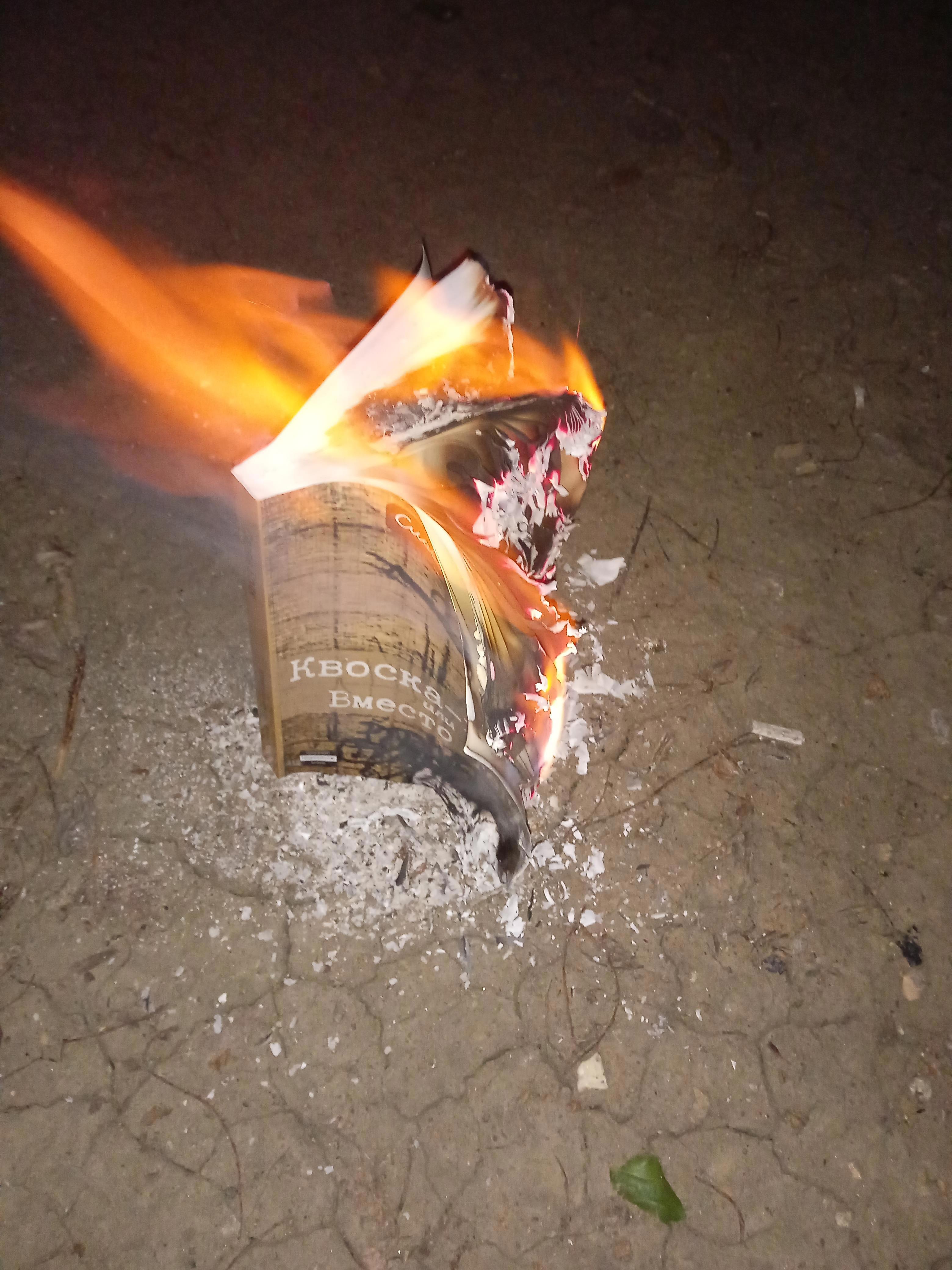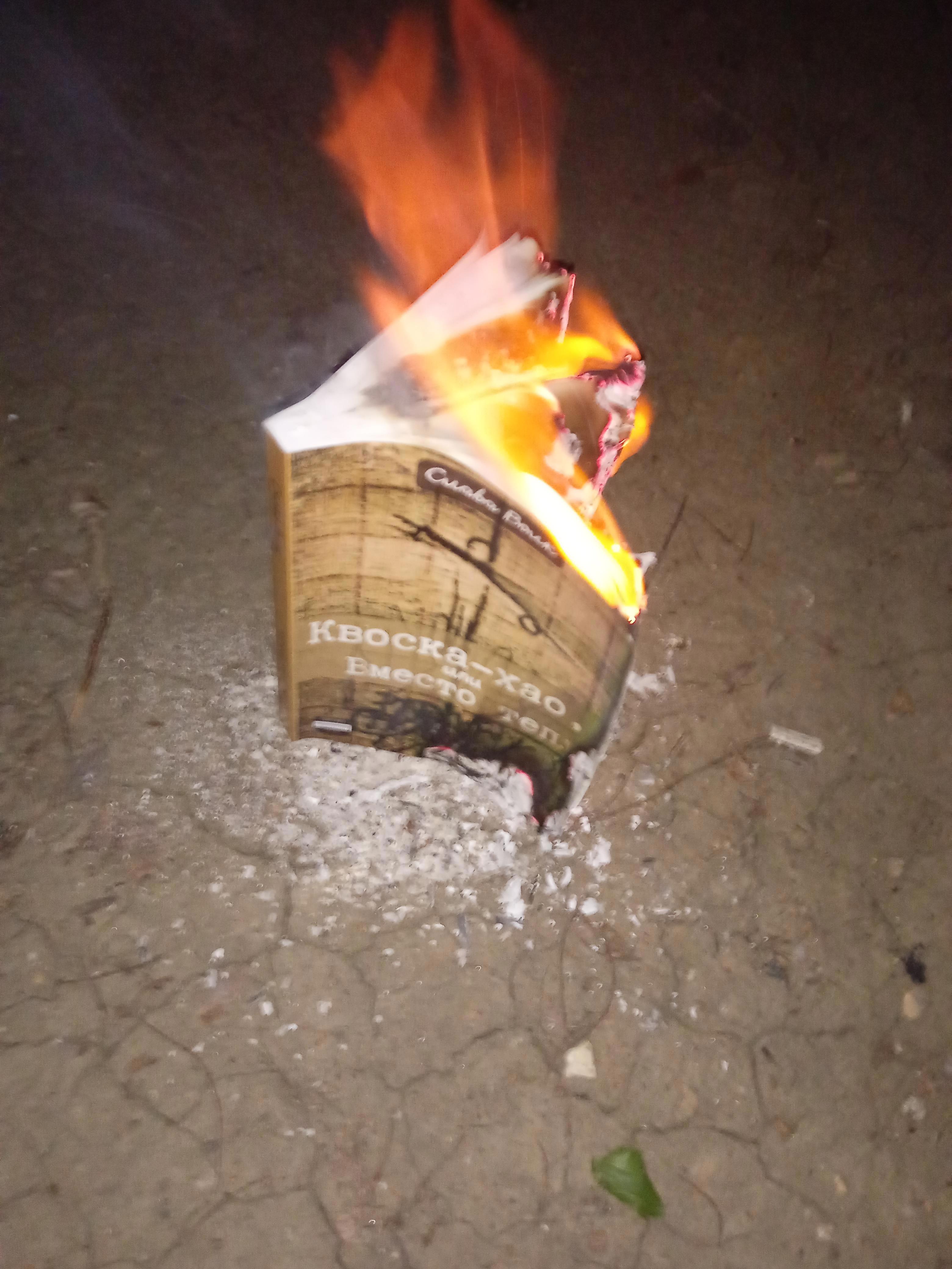 Автор: Слава ВолкБерëм нежно-нежно, словно это лепестки цветка. Зажигаем первую страницу, зажигаем вторую. Каждая становится чëрной бабочкой. Красиво, а? От второй страницы зажигаем третью и так далее, как сигареты, одна от другой, главу за главой, все глупости, обозначаемые словами, лживые обещания, подержанные идеи, обветшалую философию...