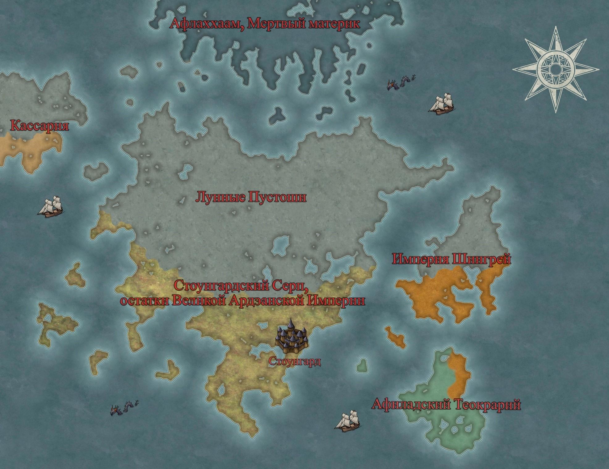 И наконец, на самом севере, среди вечных бурь и ледяных ветров, покоится проклятый материк Афлаххаам, дом старых богов, чьи черные вулканические берега погубили не один корабль безумных смельчаков, жаждущих запретных тайн. Именно сюда ссылали Великих Шаманов, рискнувших выступить против диктата Света Единого. Именно здесь, согласно легендам, в грозовых облаках можно разглядеть ужасные лики демиургов-ямалиан.