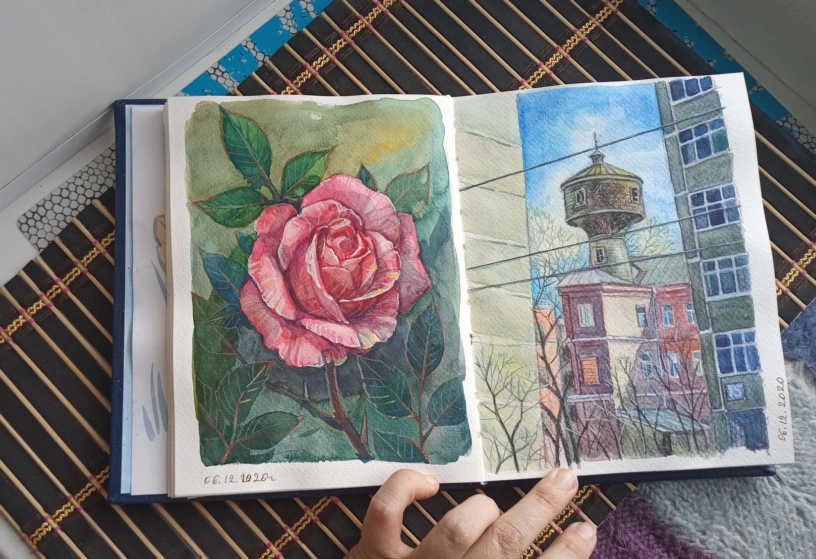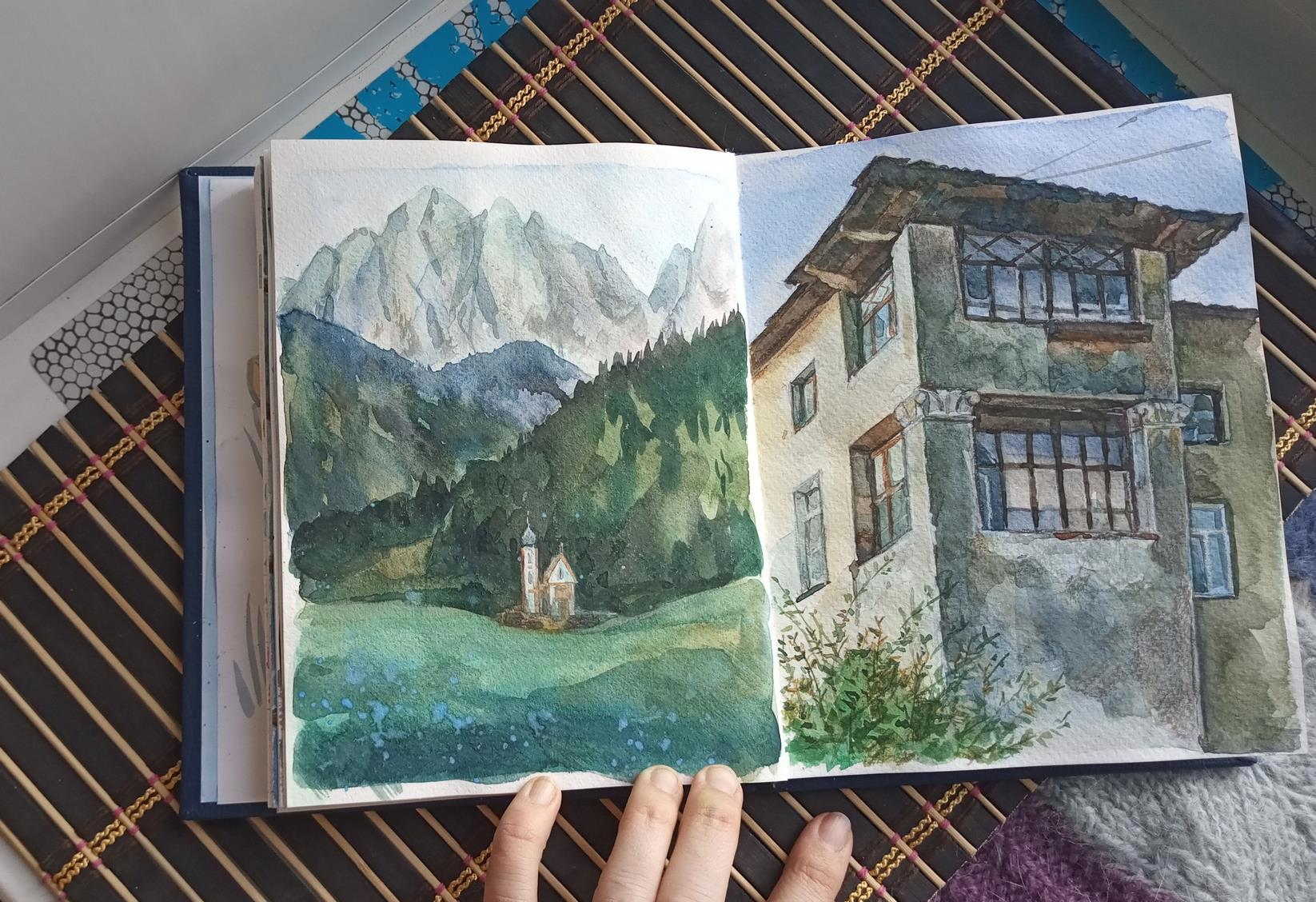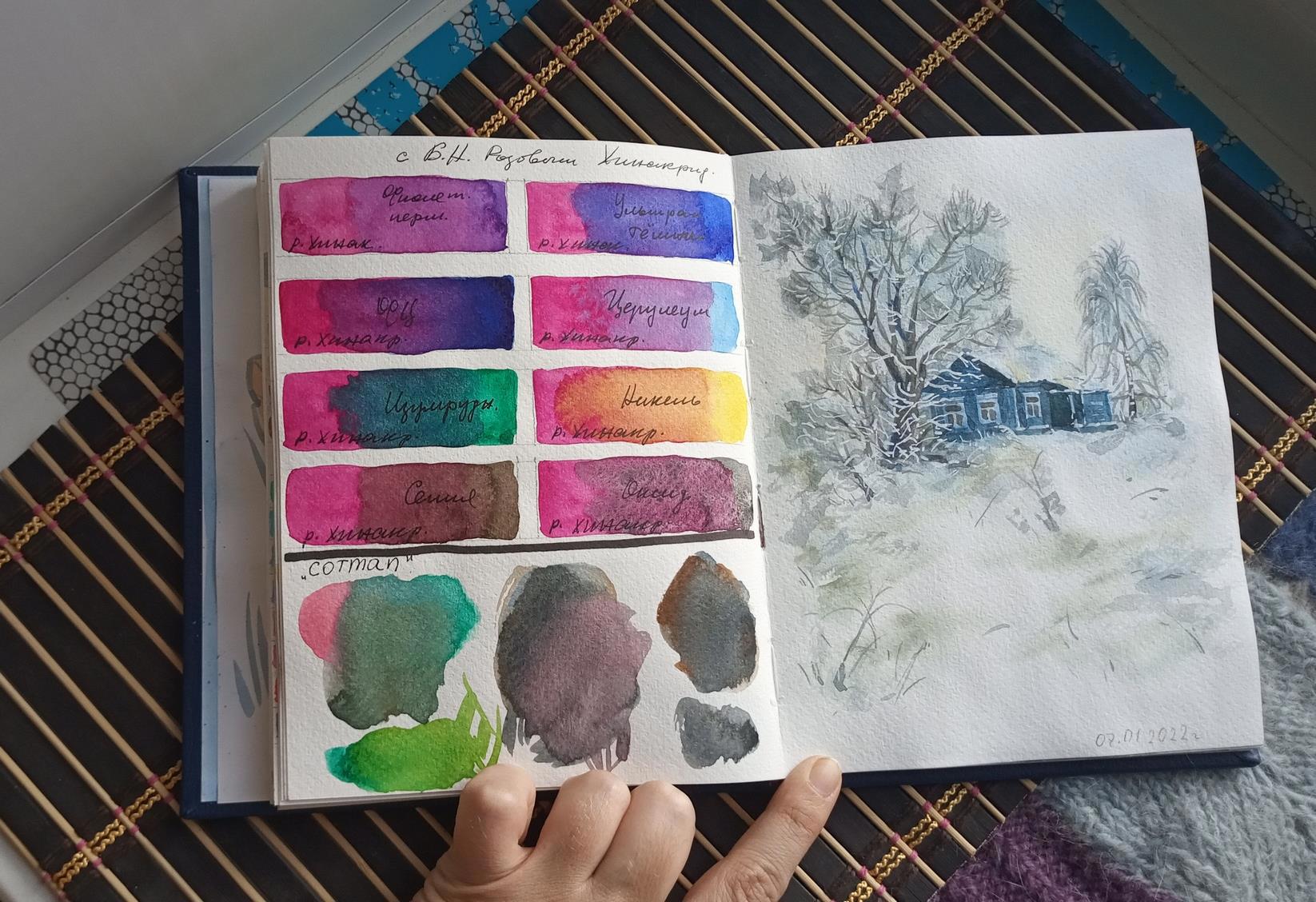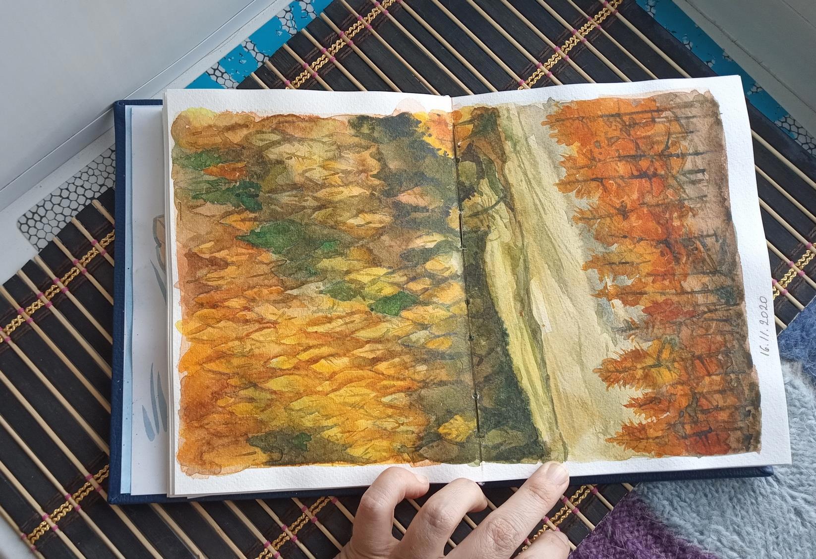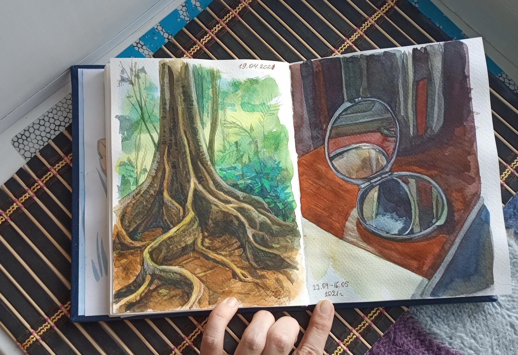 Тут попробовала порисовать на развороте. Не понравилось - сгиб всё портит.