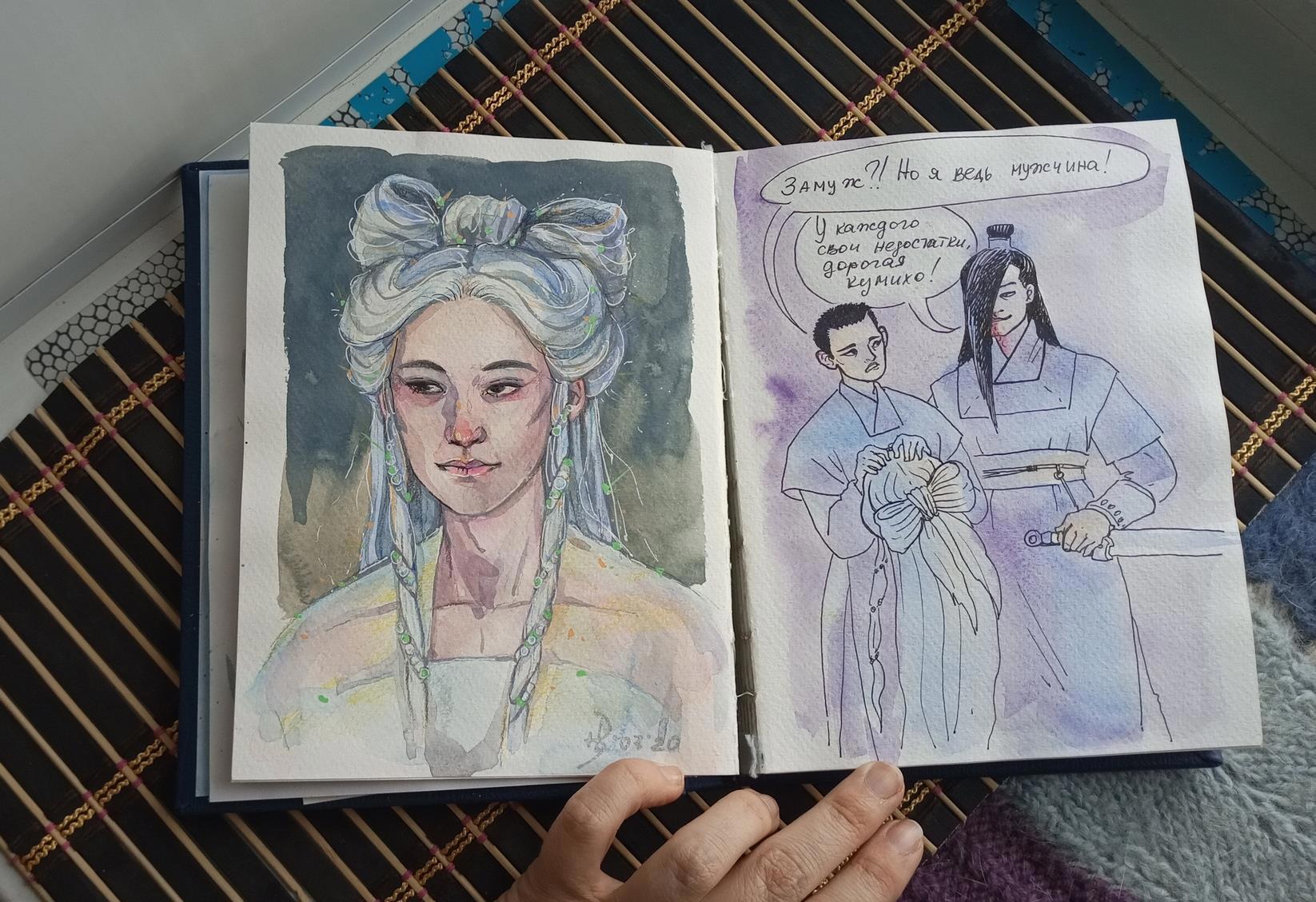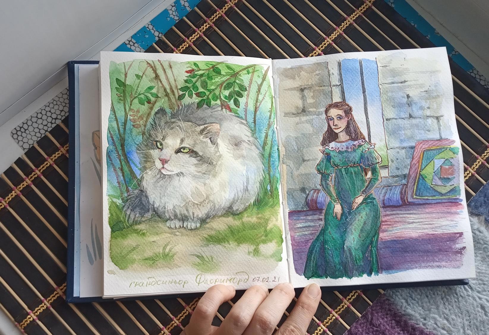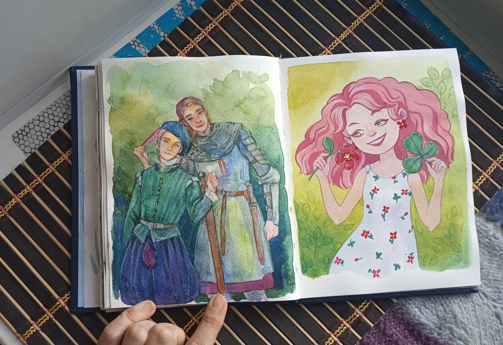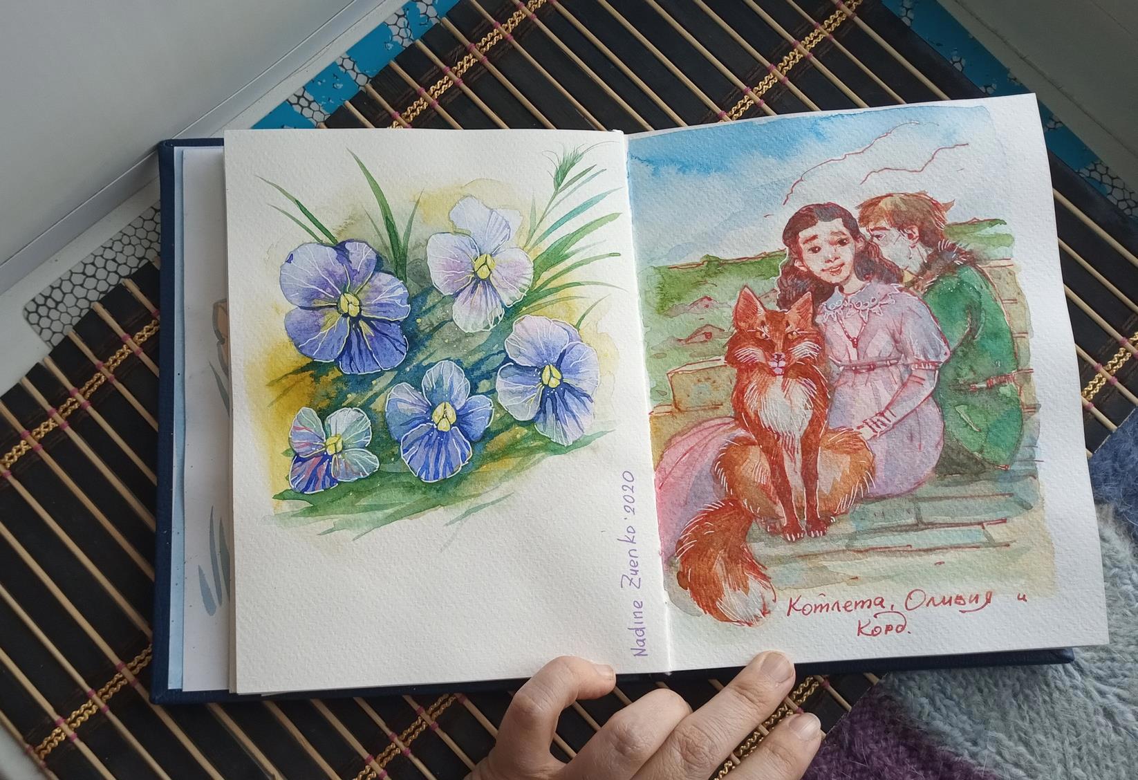 Тут вот с одной стороны неудачные фиалки, а с другой стороны с помощью туши WN карябала на тему "Вольдемара Старинова" Садова. Его названная сестра Оливия, ее лиса Котлета, а так же вражий сирота Корд.