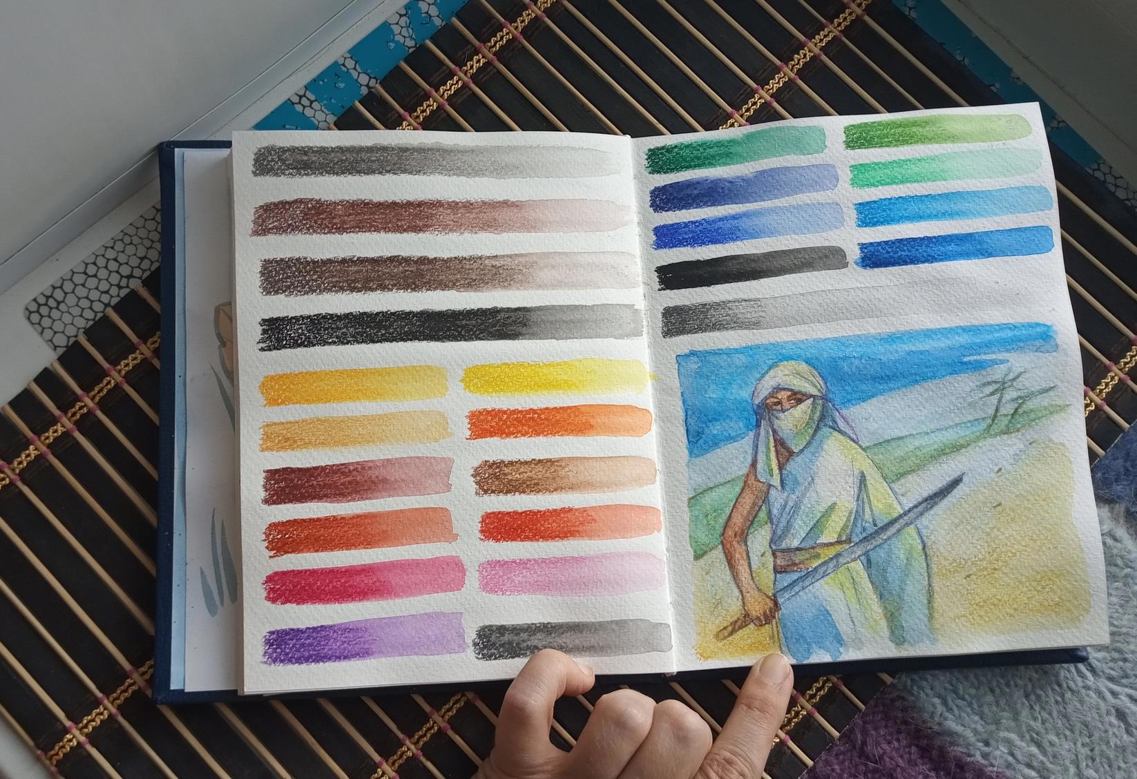 Потом я купила себе акварельные карандаши "Белые Ночи" вдобавок к своим кохиноровским огрызкам. Вовсю юзаю для доработки картинок напильником. Единственный минус - не всегда совпадают жопки карандашей с цветом грифеля: