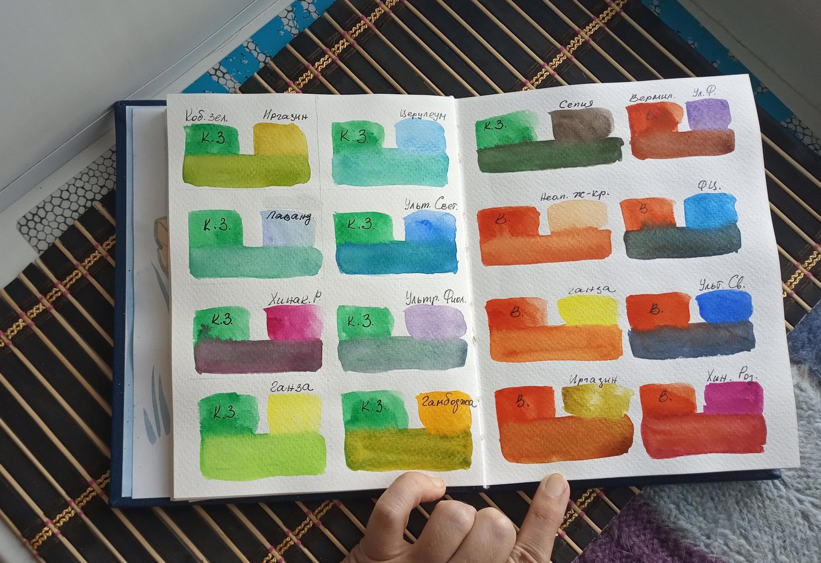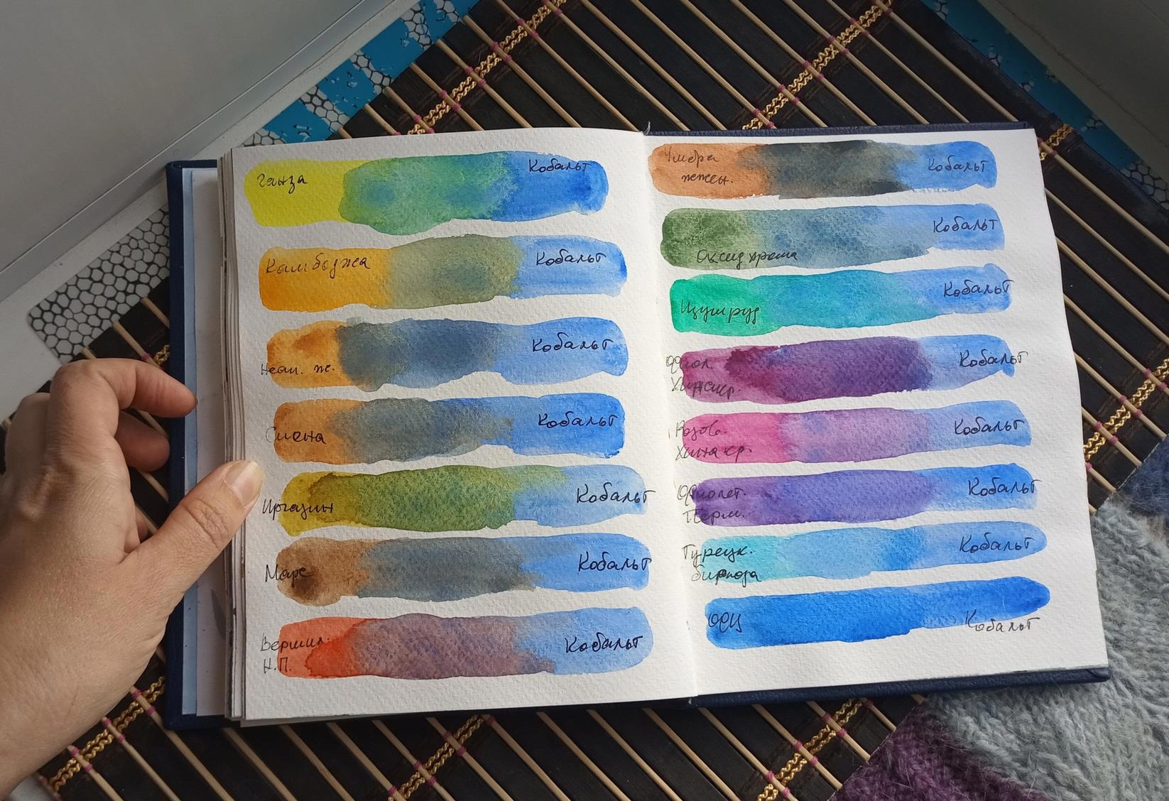 Потом добавила вот в палитру Кобальт Синий. Я и подзабыла, какой он яркий! И как гранулирует.