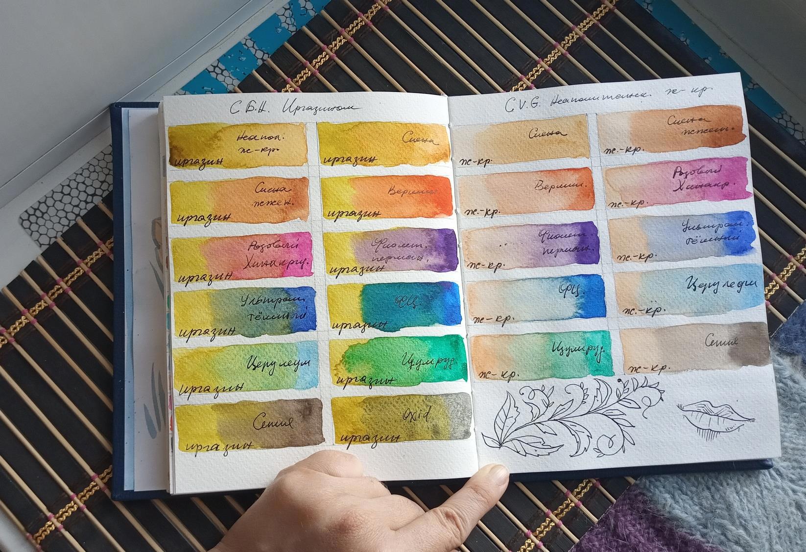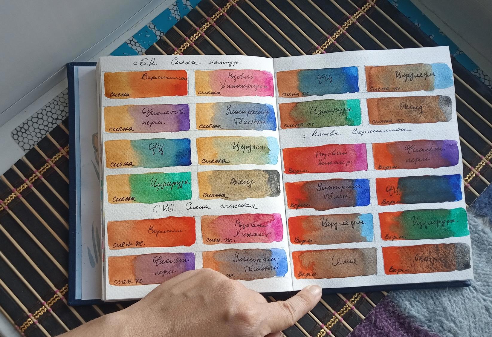 Справа видим выкраску того самого набора, который проверялся на выгорание на первых слайдах. Ну и замесы по этому набору.