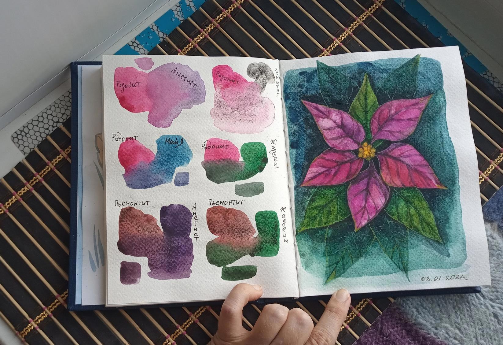 Это пробовала новые краски: кобальт зеленый от Пинакса и Вермиллион имитацию от Рембрандт.