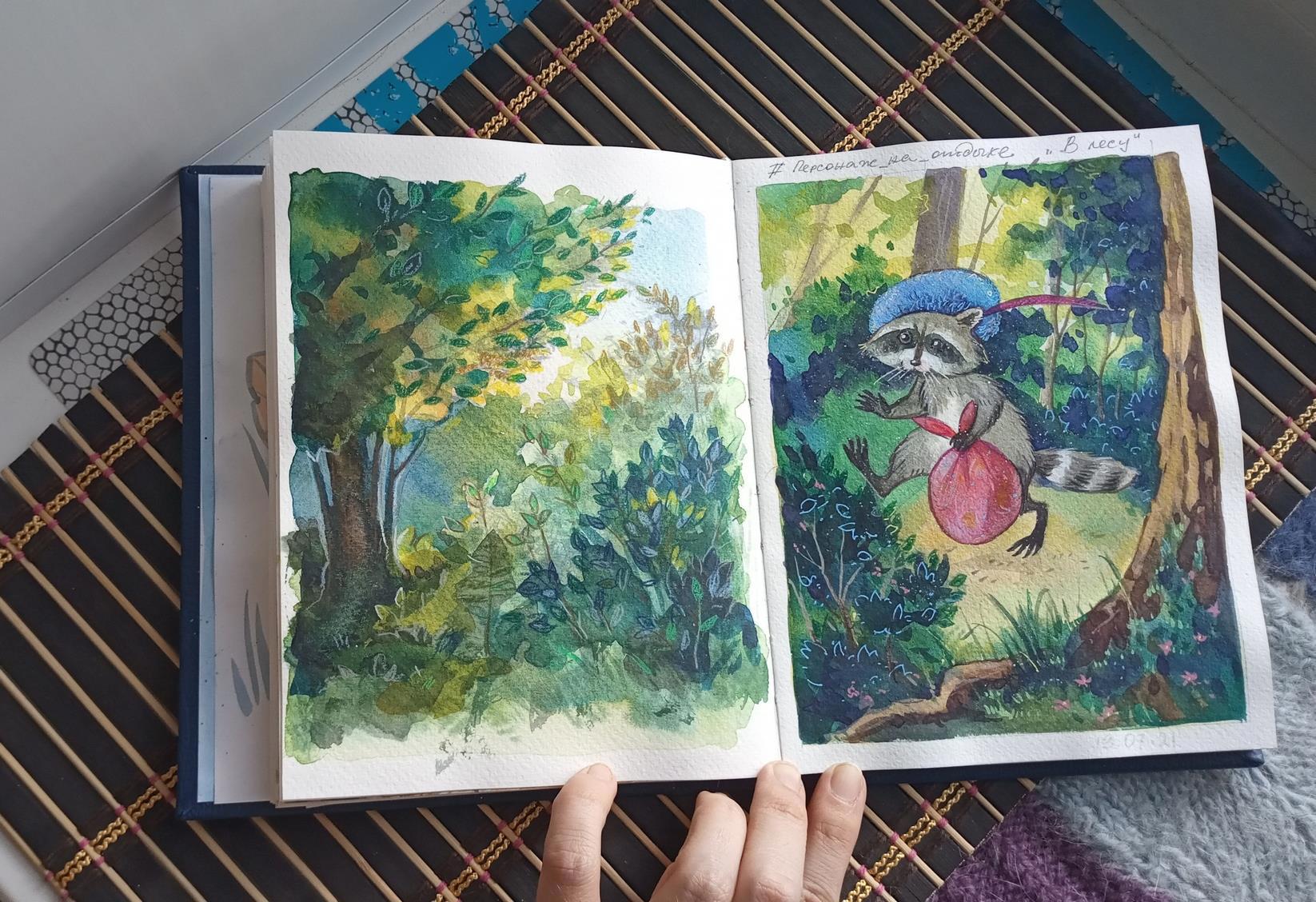 А тут серия с Перлюреном в отпуске. Тема марафона в Инстаграмме была "персонаж на отдыхе", в лесу, на море и в горах.