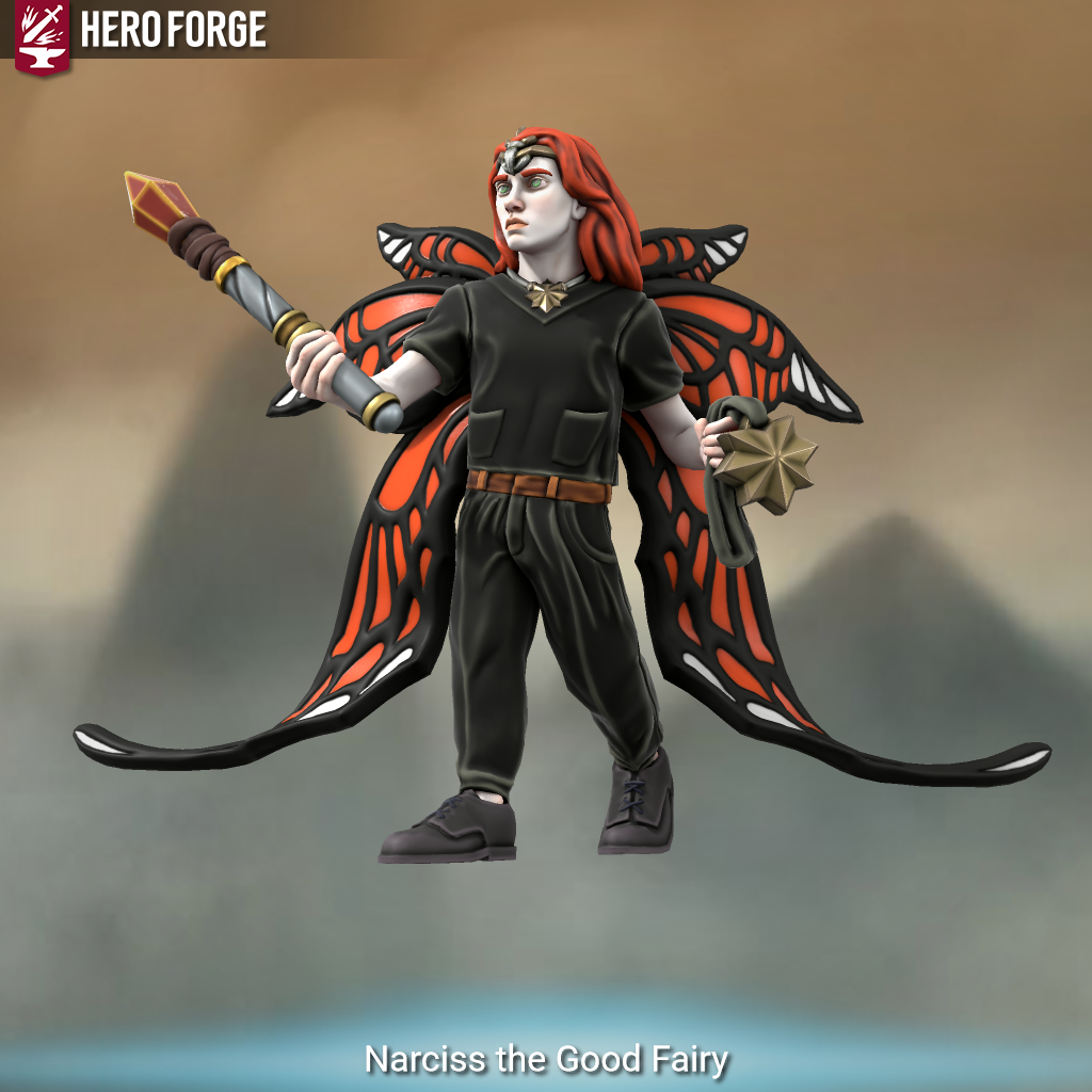 Нарцисс. Добрый фей с двуручной волшебной палочкой. Гм... В Hero Forge других волшебных палочек нет, поэтому такая.
