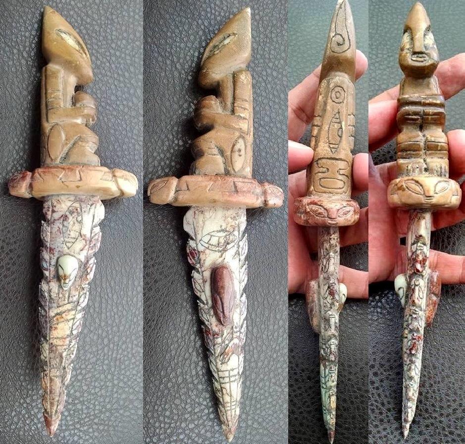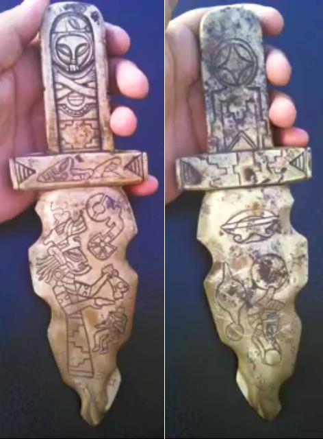 Некоторое время всё шло хорошо. То есть энтузиасты искали и находили артефакты, наука посылала энтузиастов куда подальше с этими находками, потому как найдены те были не научными сотрудниками, а рядовыми гражданами, и выглядели они очень подозрительно по мнению науки. В смысле и артефакты, и увлечённые граждане. Но время идёт и дело продолжает двигаться по довольно замысловатой кривой с многочисленными ответвлениями. Сначала энтузиасты, махнув рукой на науку, сами попытались как-то систематизировать находки. Собрались. Перебрали в своём частном музее найденное и описали то, что увидели. Получилось, что артефакты сделаны в основном из поделочных камней (яшма, нефрит, лазурит, стеарит и тд.), но среди них есть изделия из нескольких пород камня, а также из керамики, кости, а также изделия с изготовленные с использованием драгметаллов. Все они имеют разное назначение. Это фигурки, кулоны, подвески, пластины, кольца, курительные трубки, ритуальные ножи, посуда и прочее. На части артефактов имеются надписи на неизвестном языке, сделанные неизвестными знаками.