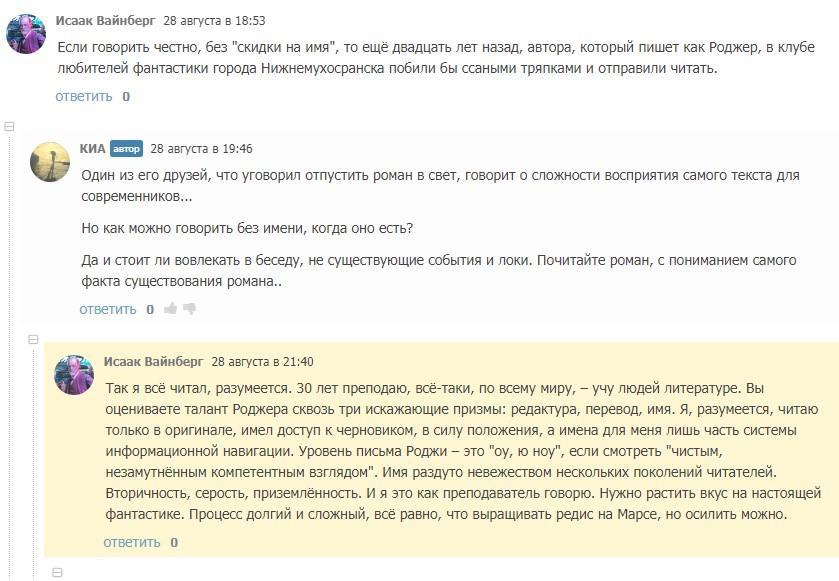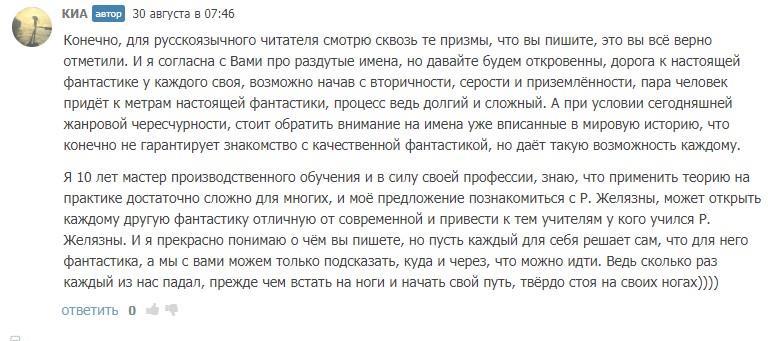 В общем, та короткая переписка с Желязнофилкой, да и её рецензия в целом, мне не понравились, т.к. лишний раз напомнили о том, как низко вы все летаете.