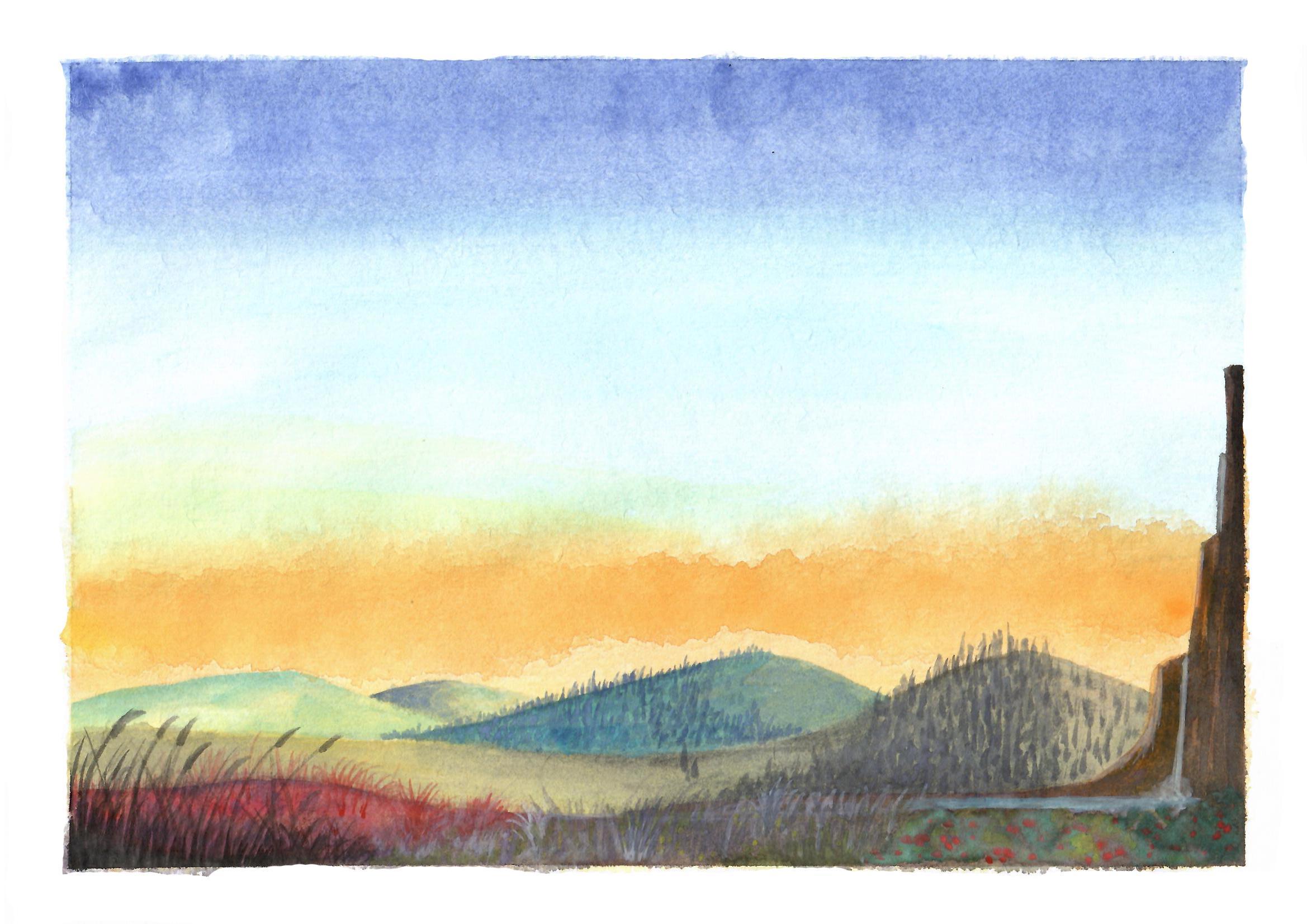 Рисовательный эксперимент, на мой близорукий взгляд, прошёл успешно. Получила массу удовольствия от работы с цветом, от кисточек (тоже дешёвеньких, как и расслаивающиеся краски), от попытки сотворить что-то новое, и, конечно, от полученных результатов, пусть они и рядом не валялись с работами тех, кто учится рисовать акварели по урокам. Я просто, насмотревшись в сети роликов, экспериментировала и ставила опыты над бумагой и краской.