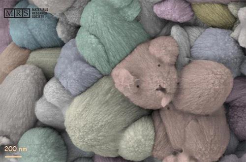 Иногда, чтобы поймать удачный кадр, нужно вовремя включить воображение. В черно-белом виде – а именно такие кадры выдает электронный микроскоп – узнать в наноструктуре оксида цинка медвежонка Тедди явно было не так уж просто. После раскрашивания картинки, конечно, совсем другое дело. И правда же – медведь.