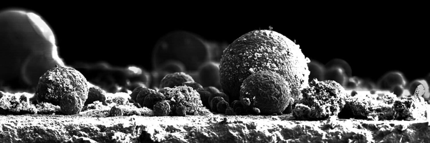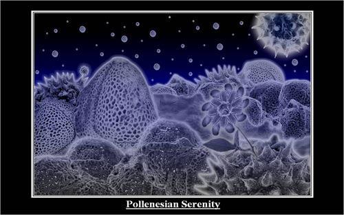 А этот ночной пейзаж составлен из РЭМ-фотографий частиц пыльцы, покрытых оксидом алюминия.