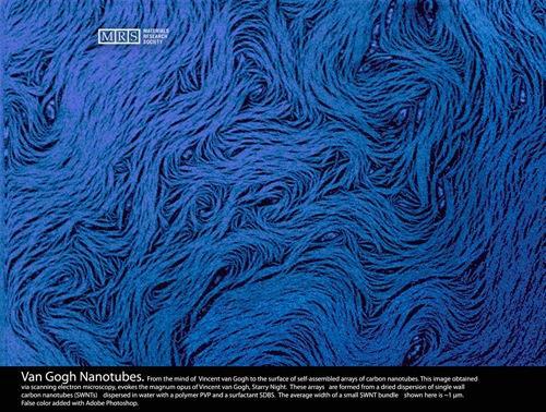 Самоорганизующиеся массивы углеродных нанотрубок действительно очень похожи на небо с картины Ван Гога «Звездная ночь». И напоминают фон одного из автопортретов художника.