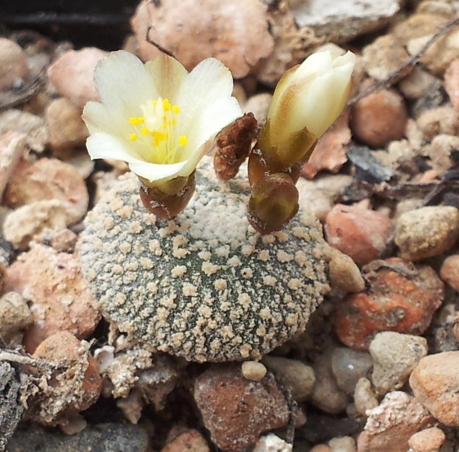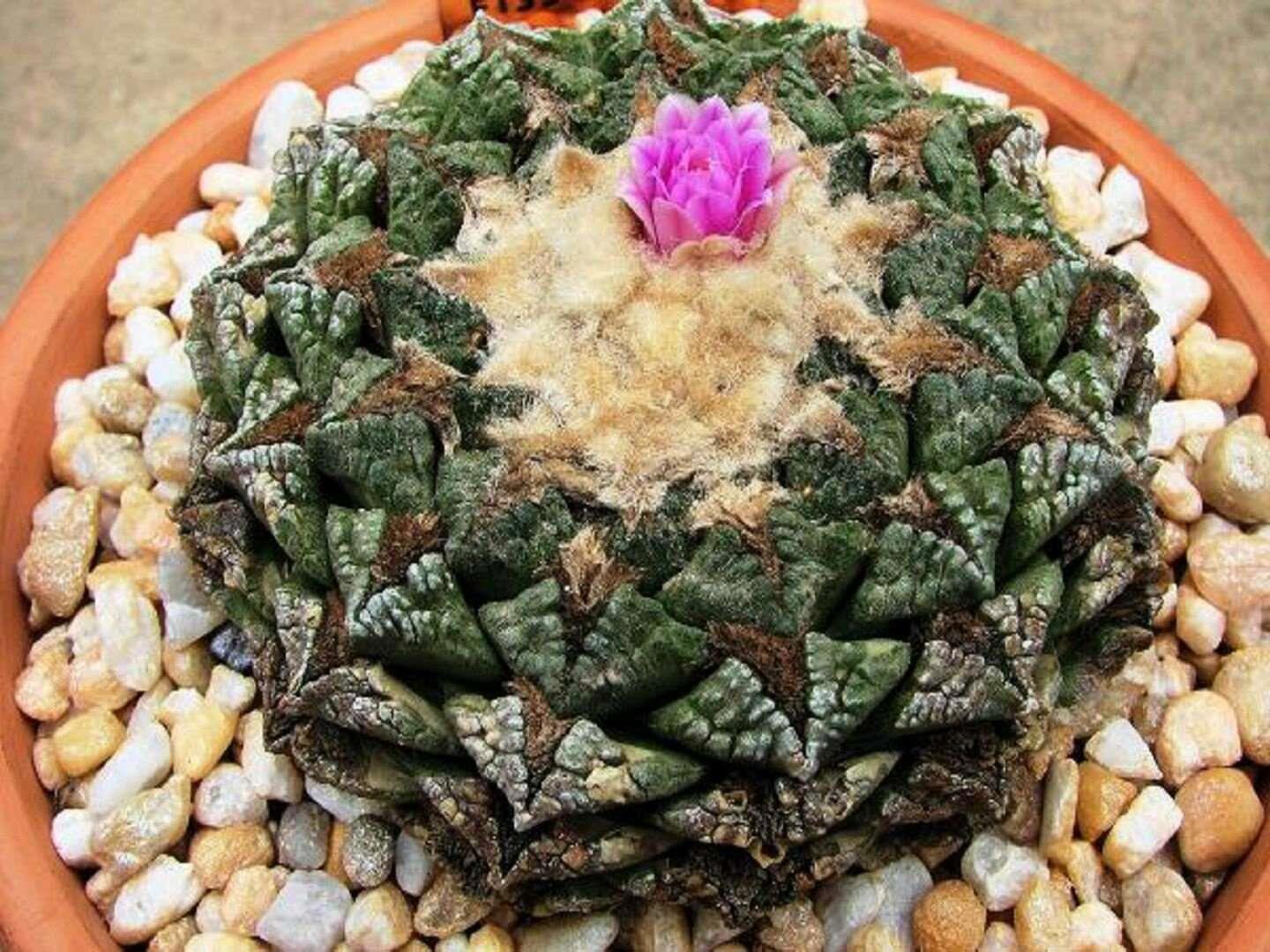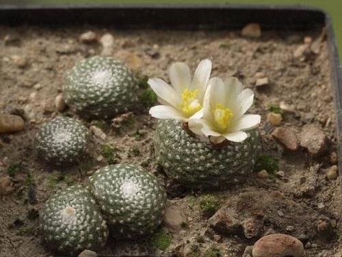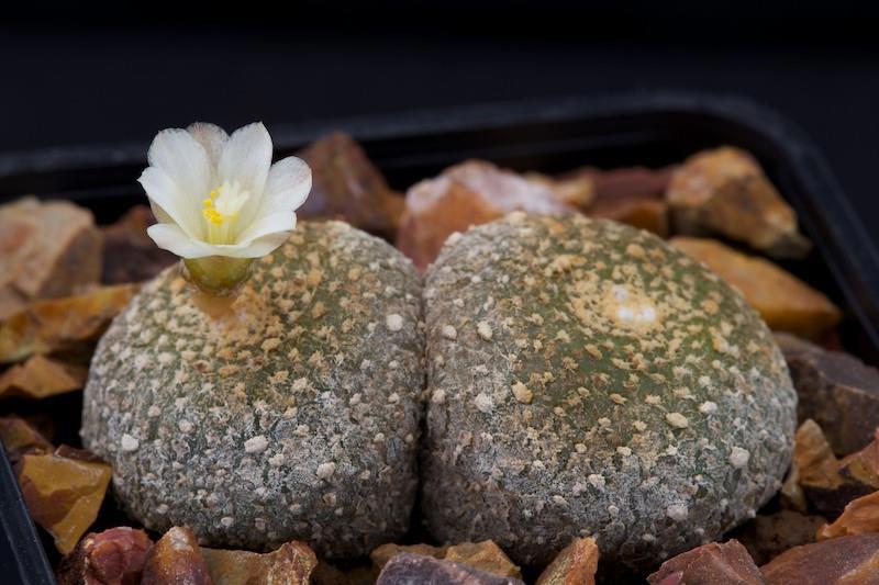 У кактусов часто округлые точки роста, но блоссфельдия карликовая растёт из выемки в центре растения.