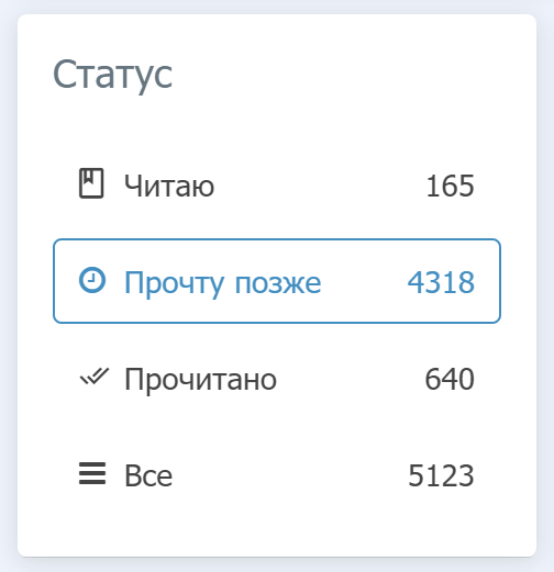Почти четыре с половиной тысячи книг запланировано к прочтению, и больше полутора сотен в статусе "вот прямо сейчас начну читать". Да вы оптимист, дружище! )))
