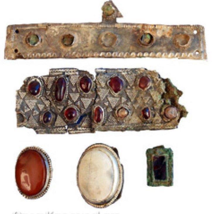 При раскопках южного кургана нашли много предметов, которые имели большую стоимость в древние времена, а на сегодня практически бесценны. Большая часть этих предметов так или иначе связана с убранством коня и оружием. Наши археологи вообще славятся дурной манерой «показывать свои находки лицом». Фотографии, даже если они есть, то скверного качества. В данном случае они превзошли сами себя. Фотку я нашёл только одну. Сказать, что она дерьмовая – вообще ничего не сказать: