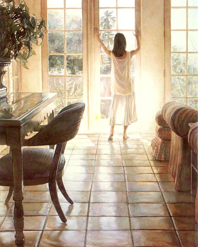 "Солнечный свет стал одним из моих любимых предметов. Я очарован тем, как он фильтрует вещи, как он заливает всю комнату цветом. Часто мои картины действительно больше посвящены солнечному свету, чем чему-либо еще."
