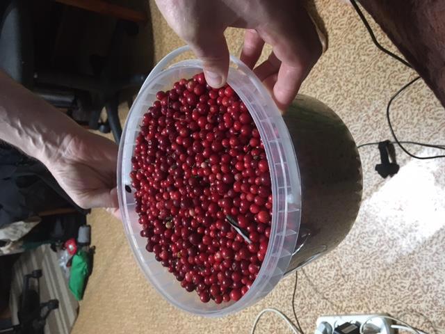 На следующий день снова так же, только начали процесс со сбора клюквы на болоте. Она еще не совсем поспела, так что много не набрали, выбирать пришлось. Потом - снова грибы и брусника, кто нашел чернику, тот нашел, мы что нашли, то съели )). По пути домой просто купили пару литров у местных.