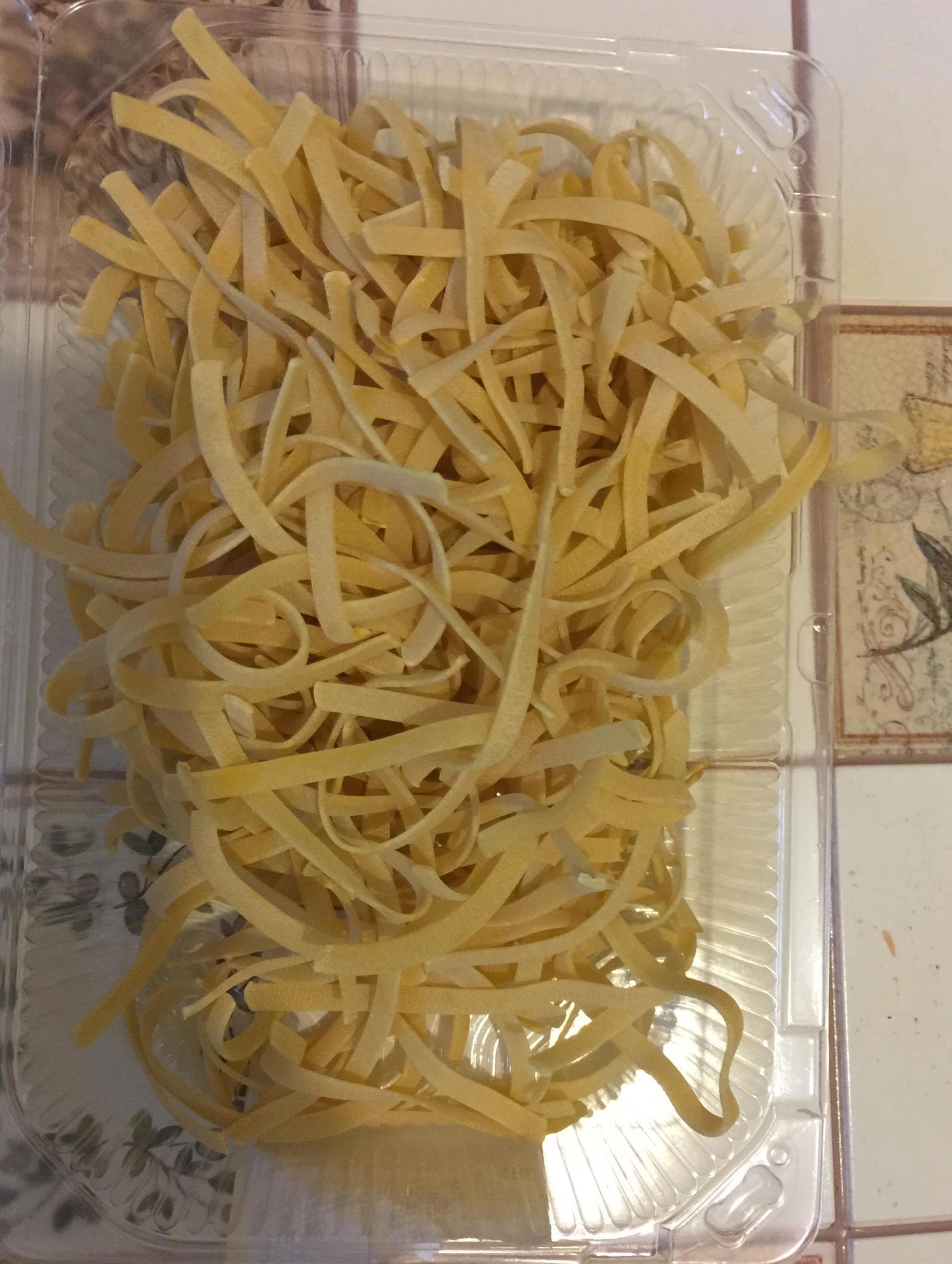 Для полного соблюдения традиций лапшу тоже нужно делать самой, но я купила готовую. Так и называется "лапша яичная домашняя для лагмана". У меня ушло 340 грамм.