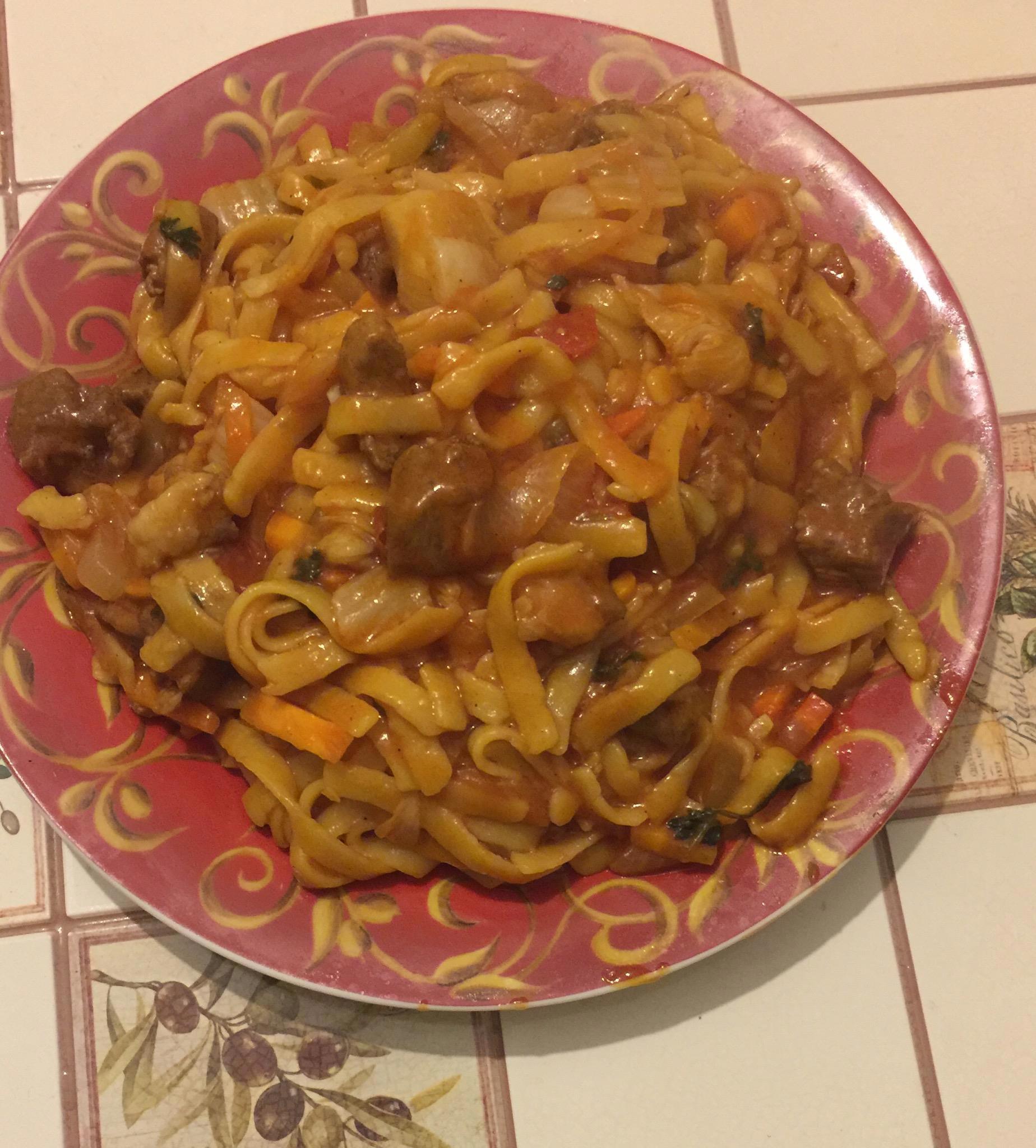 Традиционно это блюдо готовят с бараниной, но пока я постигала в интернете таинство приготовления лагмана, мне встретились рецепты с говядиной и даже со свининой. Я встречаю хорошую баранину нечасто, поэтому настроилась на лагман с говядиной. Но, ура-ура, в фермерский магазинчик как раз привезли хорошую баранину, и у меня все получилось, как должно быть.