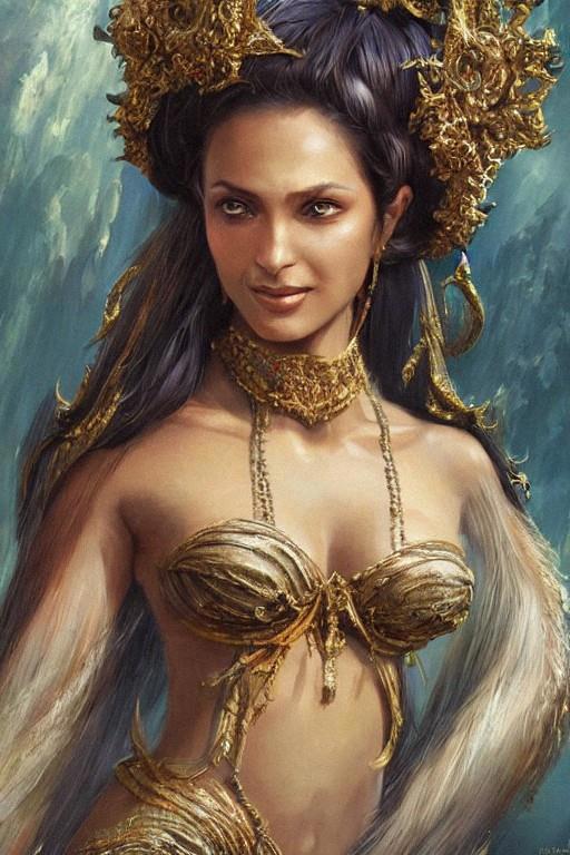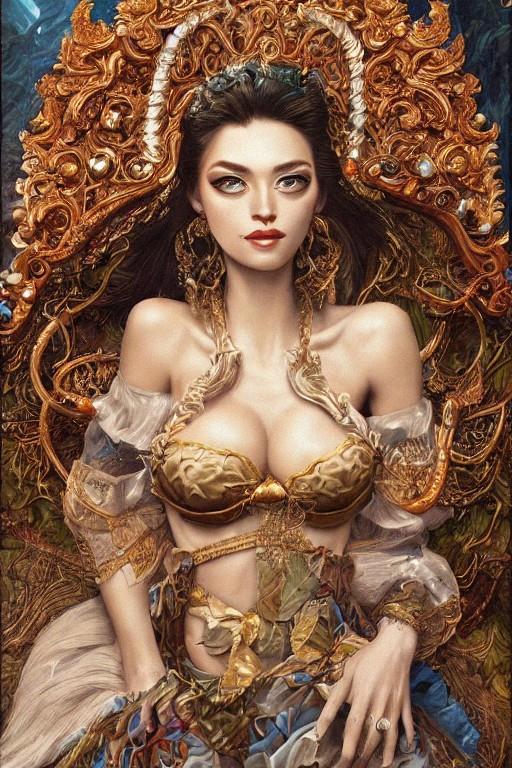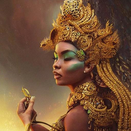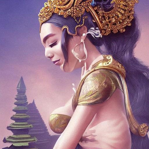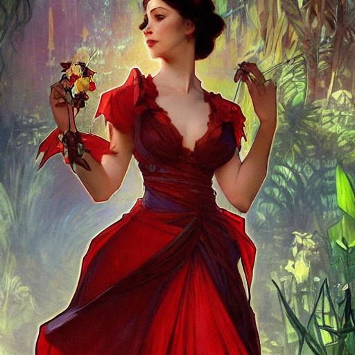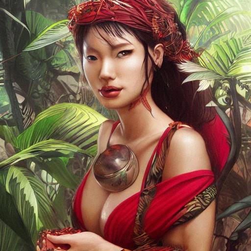 Бьюсь я с ней уже третий день и ничего путного не выходит. Задача была сгенерить образ европейской девушки на острове Бали. Я вводила на английском разное, типа "европейская женщина на Бали, высокая детализация" и "молодая женщина в красном платье с кинжалом в джунглях" и "женщина в платье в джунглях в стиле Альфонса Мухи", но пока ничего нормального не вышло. То у девушки три руки, то нога на лице, то голова отрезана. В общем... кажется процесс пока не намного проще, чем самой сесть за коллажирование в фотошопе.
