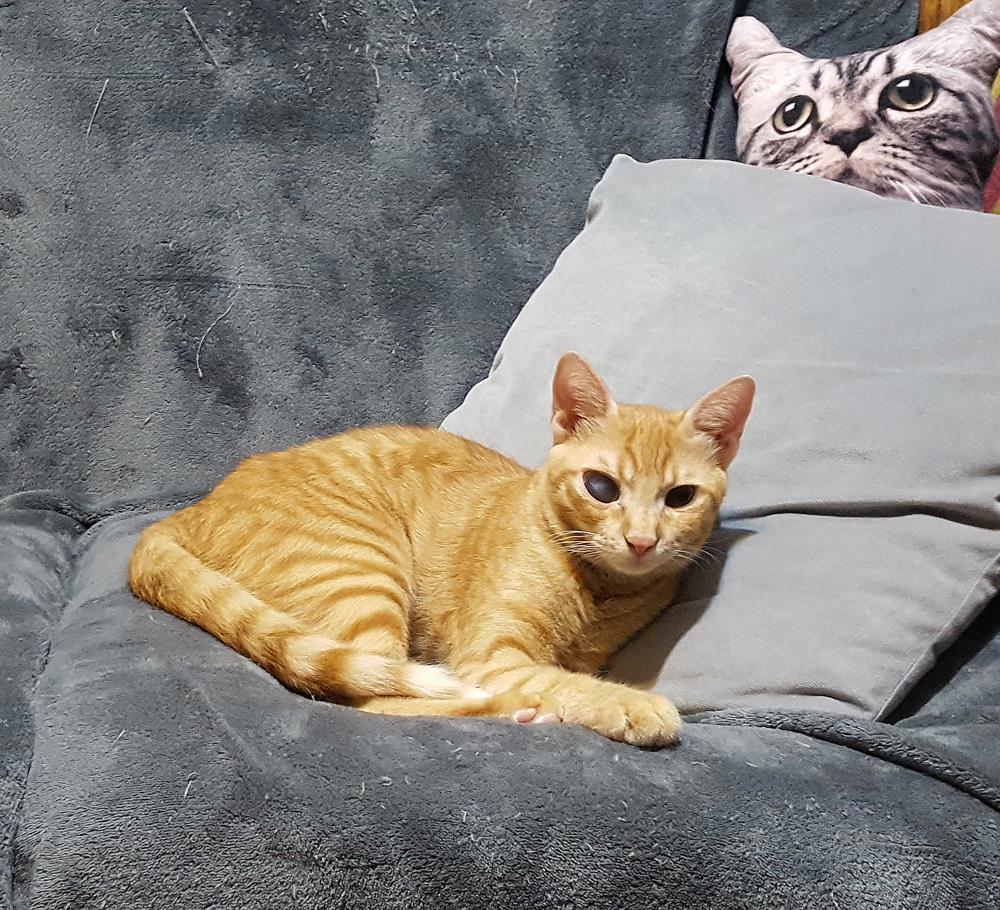 А вот видите там подушку в форме кота? Кацман ее поначалу ужасно боялся. То есть он ее опознал как "кота", несмотря на достаточную условность и не тот запах, и испугался такого здоровенного. Стоило "кота" пошевелить, Кацман сбегал. Но потом он понял, что этот кот, может, и большой, но трус. И вапче он, Кацман, в доме хозяин)