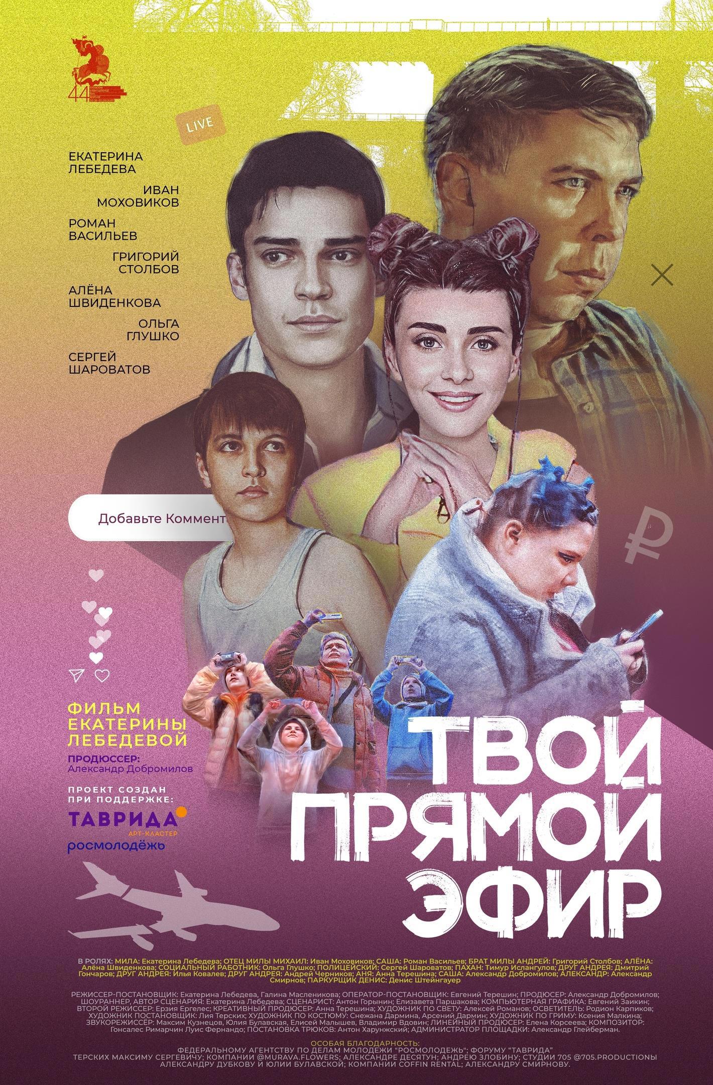 Автор: AriazВот и готов постер короткометражной ленты Екатерины Лебедевой «ТВОЙ ПРЯМОЙ ЭФИР» - фильма-участника 44-го Московского Международного кинофестиваля.