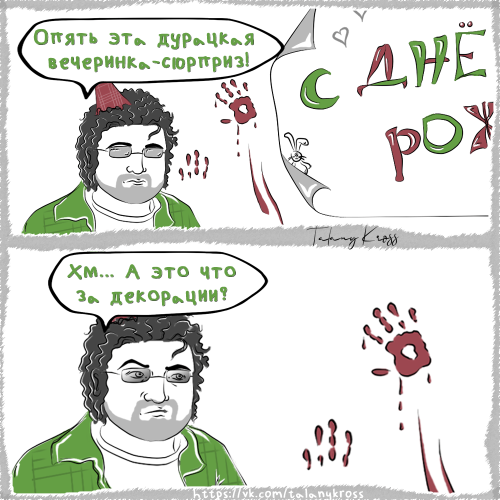 Автор: Талани КроссЭтот комикс должен был появиться еще вчера в честь дня рождения моего дорого соавтора Робина Штенье, но я, как истинный слоупок, просрала все сроки не успела закончить его вовремя.