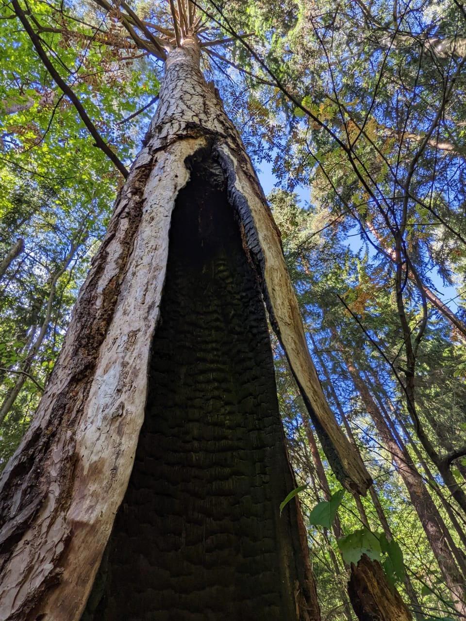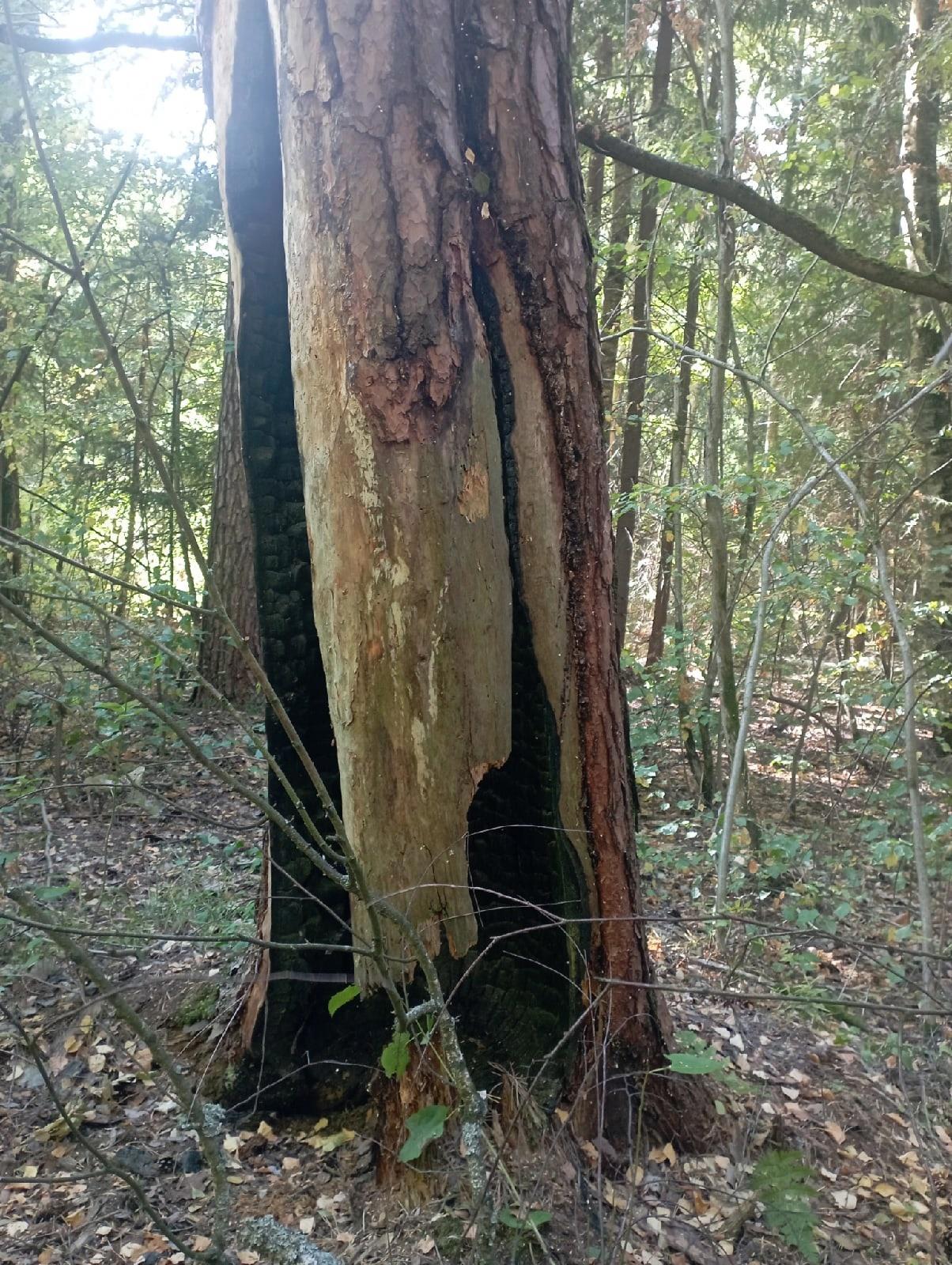 Ствола у основания нет, только кора, и та за корни держится лишь половиной окружности.