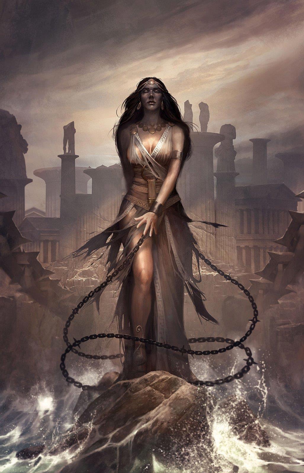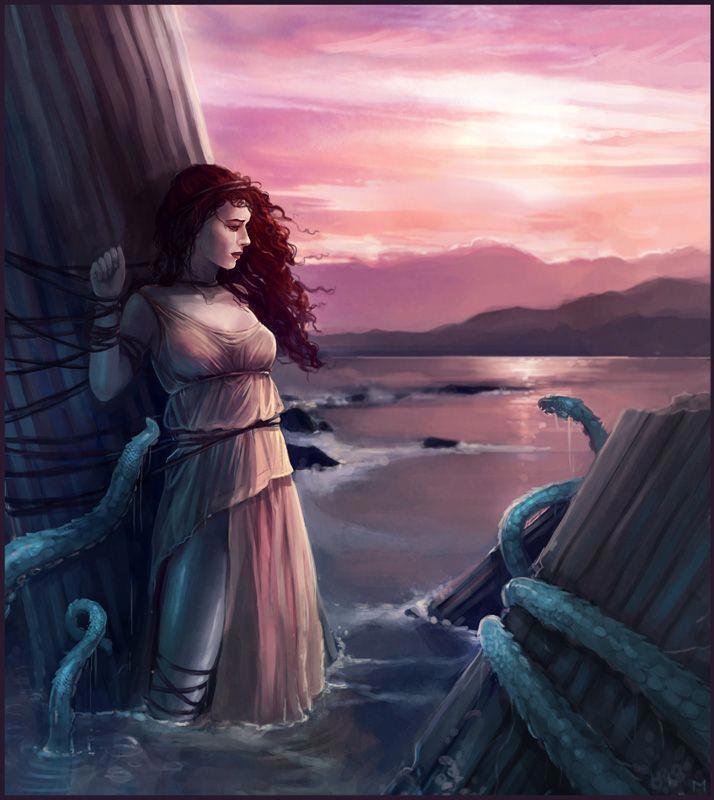 Андромеду в жертву чудовищу, и жители страны принудили царя решиться на эту жертву. Прикованная к утёсу, Андромеда была предоставлена на произвол чудовища.