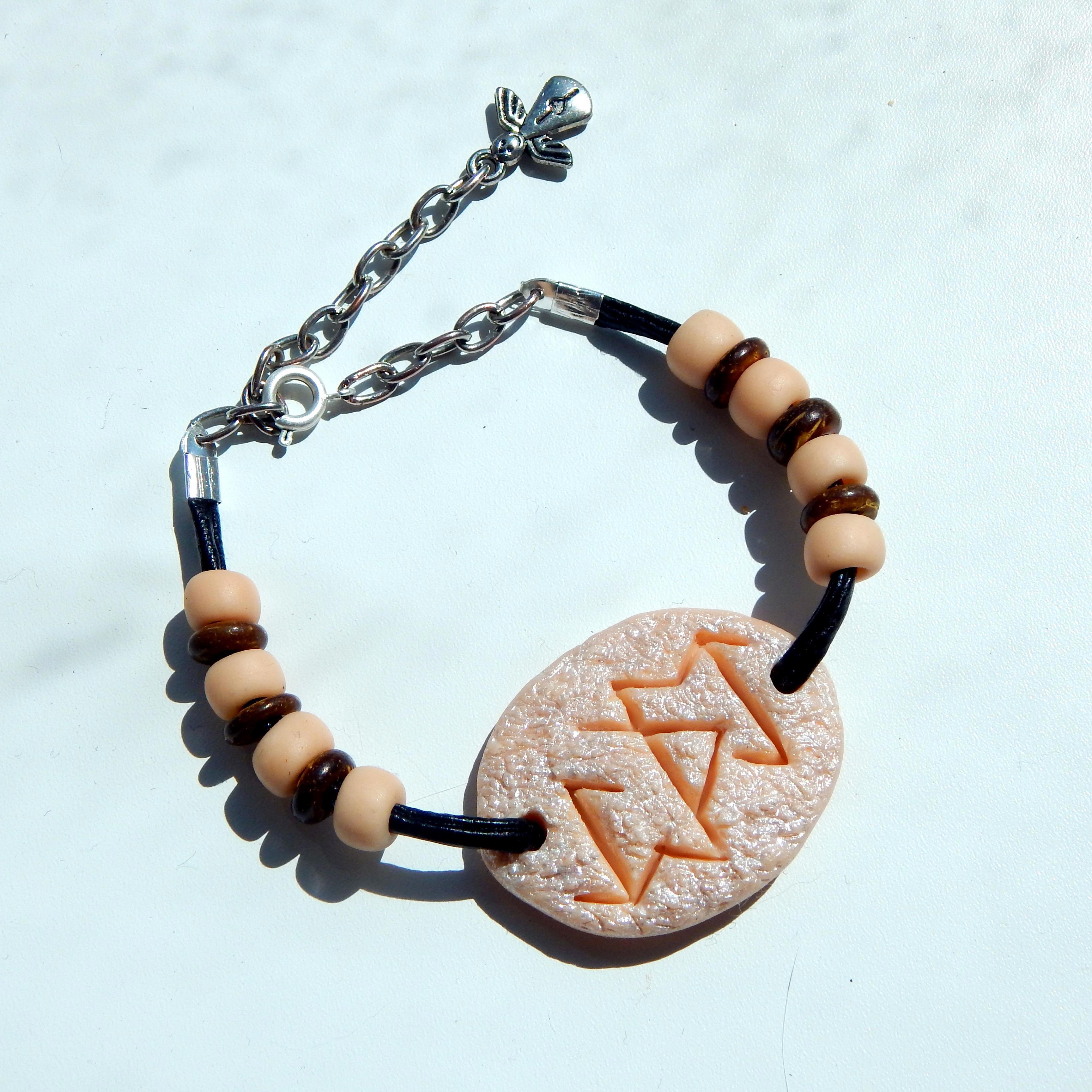 Вся последняя партия моих изделий потерялась вместе с багажом дочери. После этого я перестала украшения делать — это как знак был. Да и глины на натуральных маслах не стало — заводик закрылся. Из остатков иногда что-то с рунами ваяю. Для себя или для друзей. Или знакомые мальчики топорики просят.