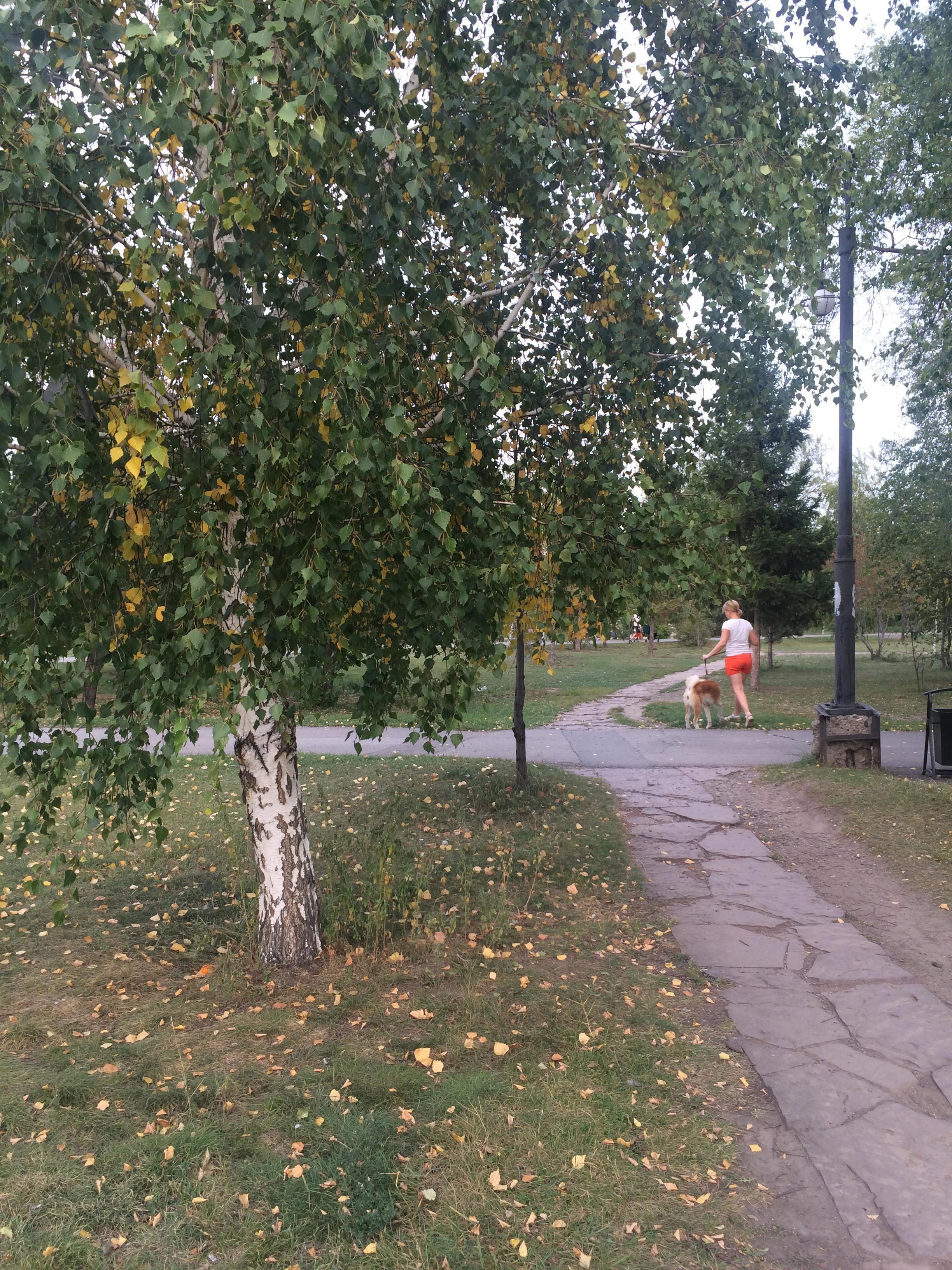 И я решила по дороге домой запечатлеть этот замечательный день: как голоногая девушка гуляет с собакой