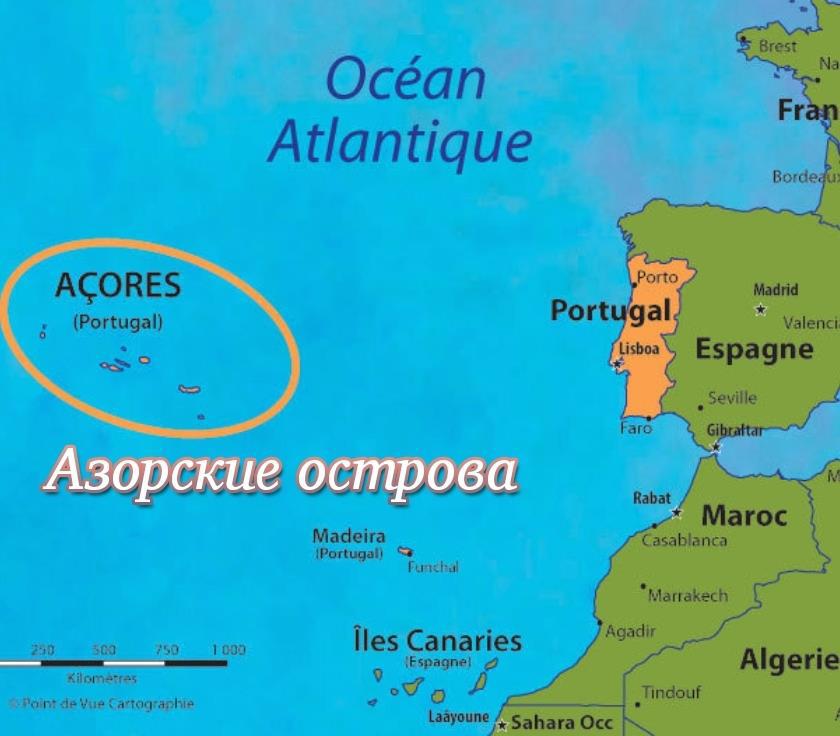 Азорские острова на карте