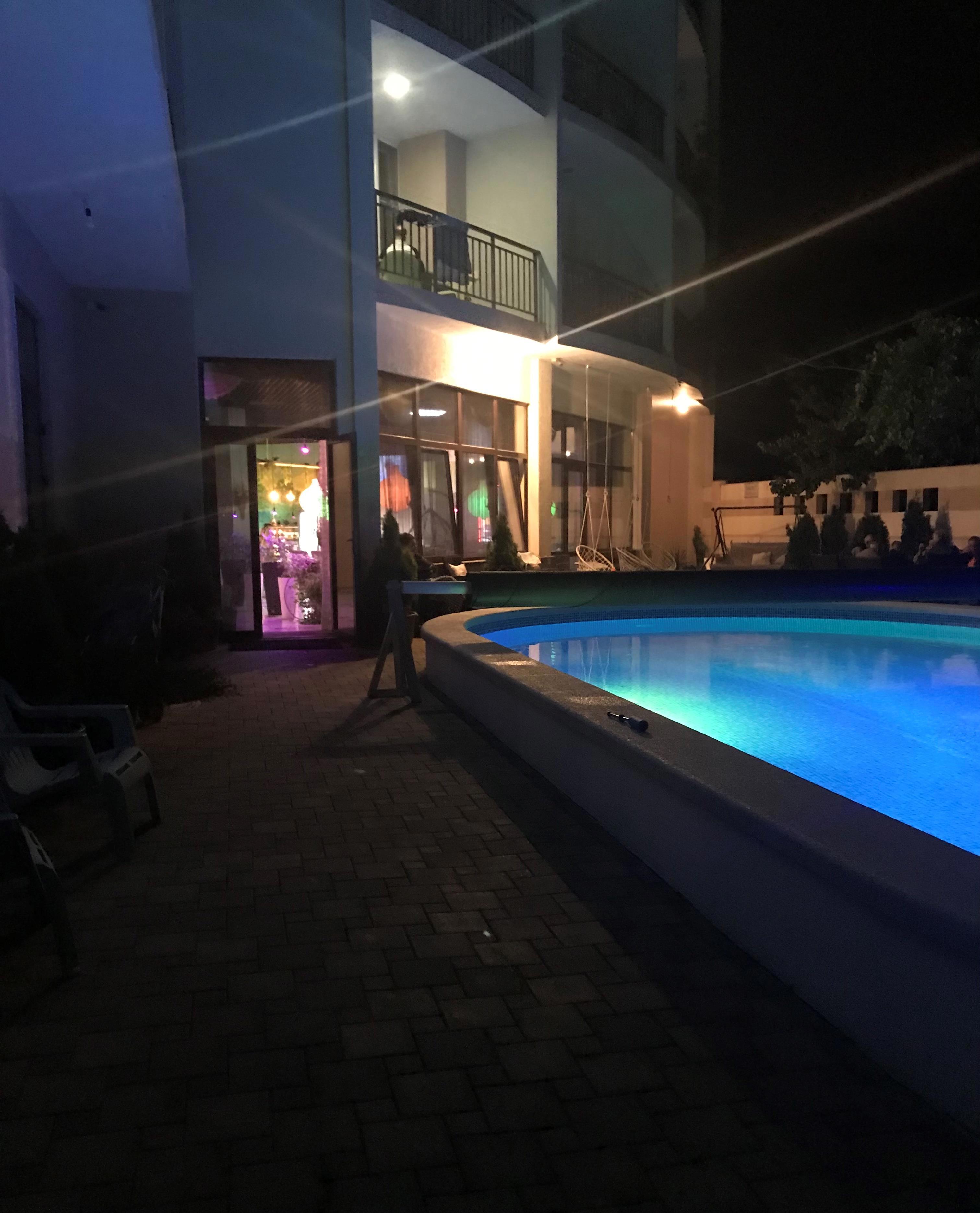 Есть бассейн и теннисные корты. На которых и организует турнир наш муж.