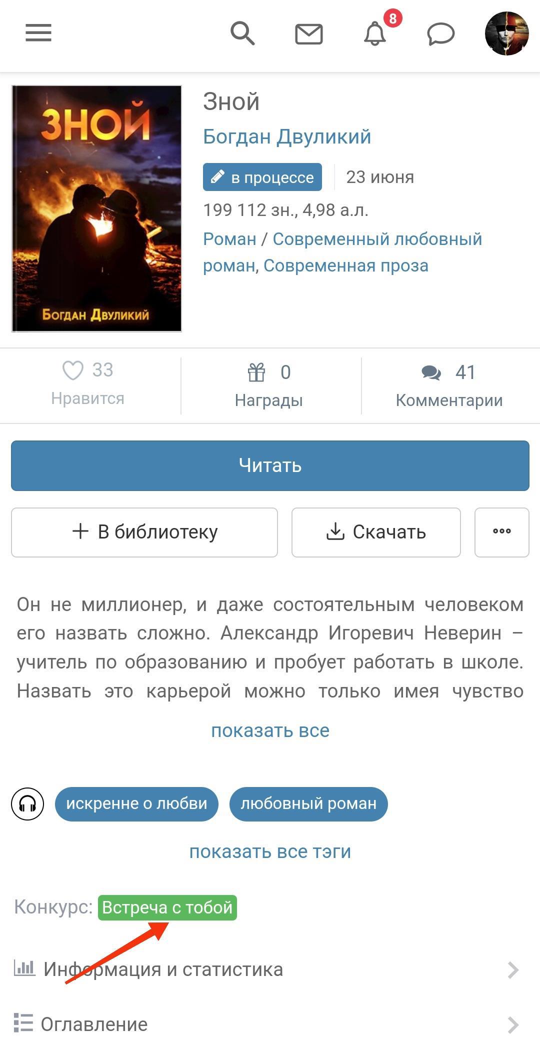 Я прошëл в конкурс современного любовного романа