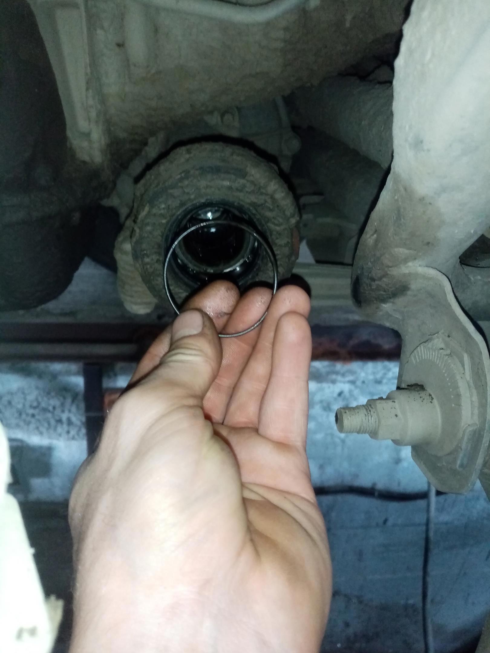 Как определить, что вашему внутреннему ШРУСу п****а? Взять за скалку и покачать вверх-вниз. Шевелиться не должно. Если шевелится - меняйте ШРУС. Тут скалка шевелилась, но не только справа, но и слева. Достал правый привод, а масла в мосту нет. И ой... Что это там лежит?