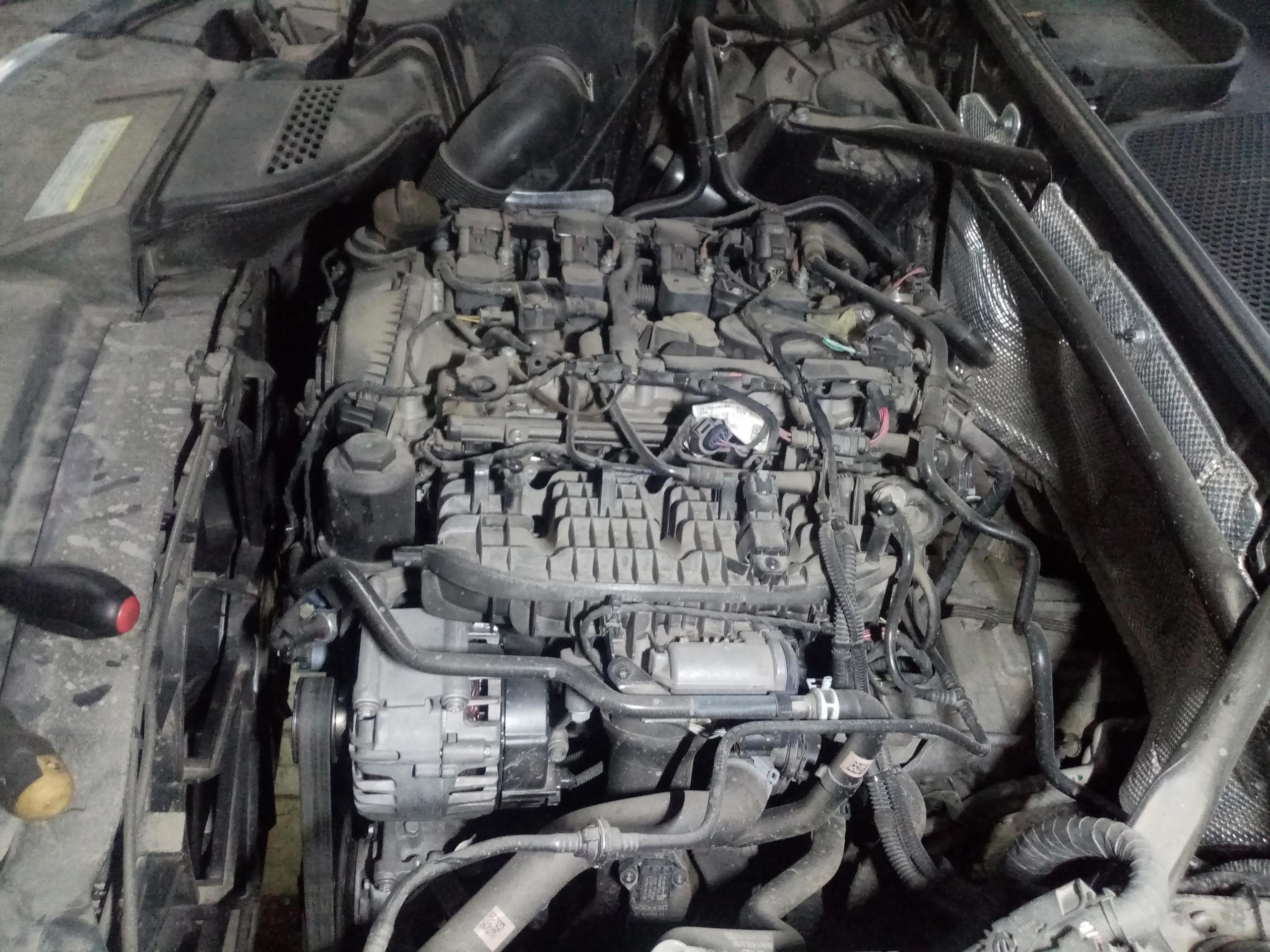 Долго и нудно разбираем, и та-дам! Видим правую клапанную крышку. Чтоб добраться до левой - придётся снять вторую половинку впускного коллектора, хорошо, что нам туда не надо. Владелец ещё просил свечи посмотреть, и поменять если надо - свечи ещё огого, поэтому весь впуск снимать не будем. А для замены свечей - это надо делать. Да. V6. Без компромиссов.