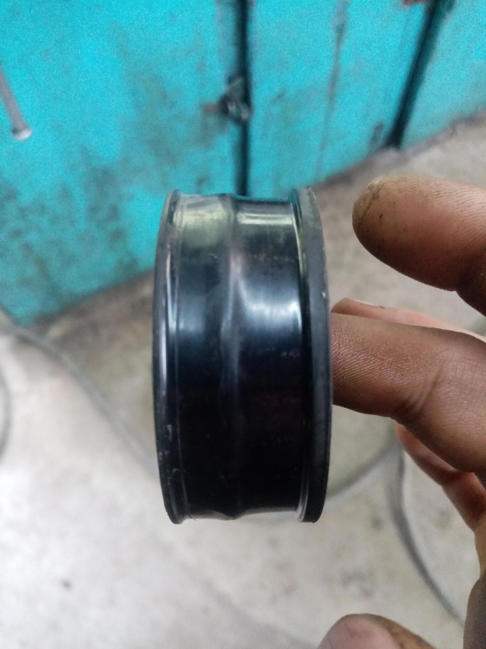 Наглядное сравнение новых и старого сальников свечных колодцев. Старый скукожился и стал в полтора раза меньше по высоте, и соответственно не уплотнял стык.