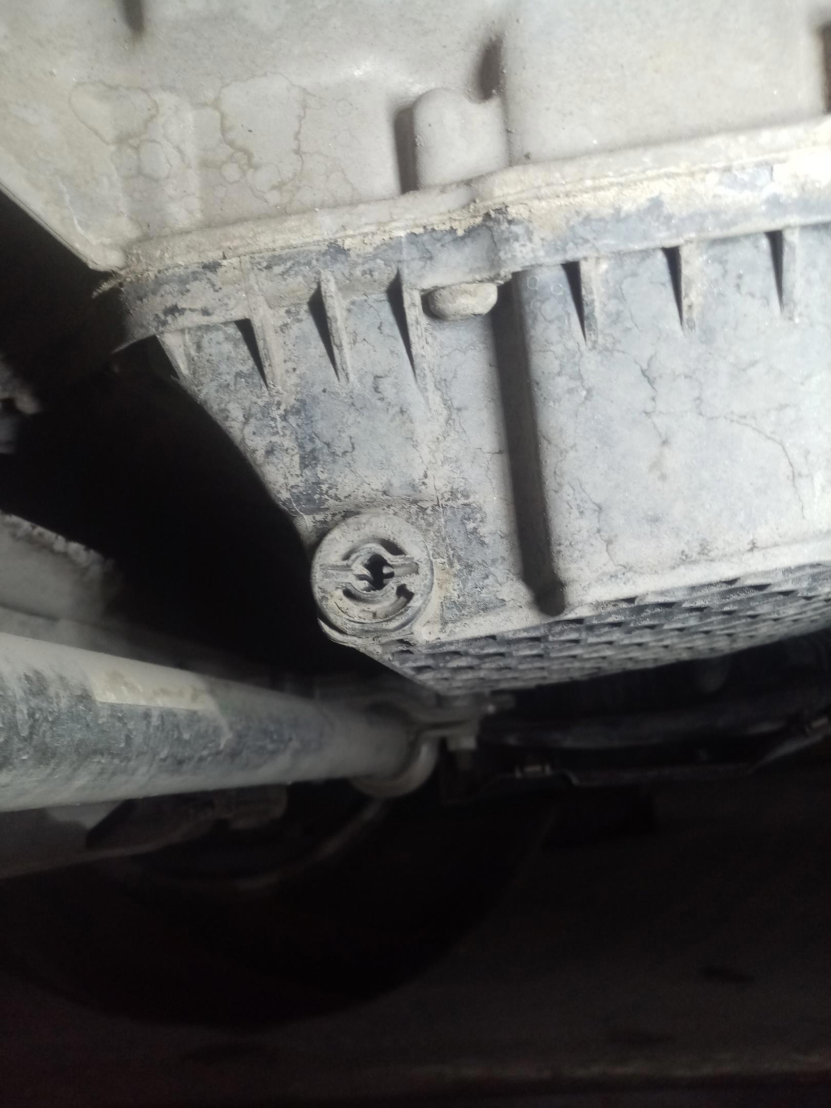 Пластмассовый поддон с пластмассовой же пробкой для слива масла. Увидев это я сначала приуныл, как ЭТО открутить?7 А потом включилась смекалка: взял плосскую отвертку и открутил.